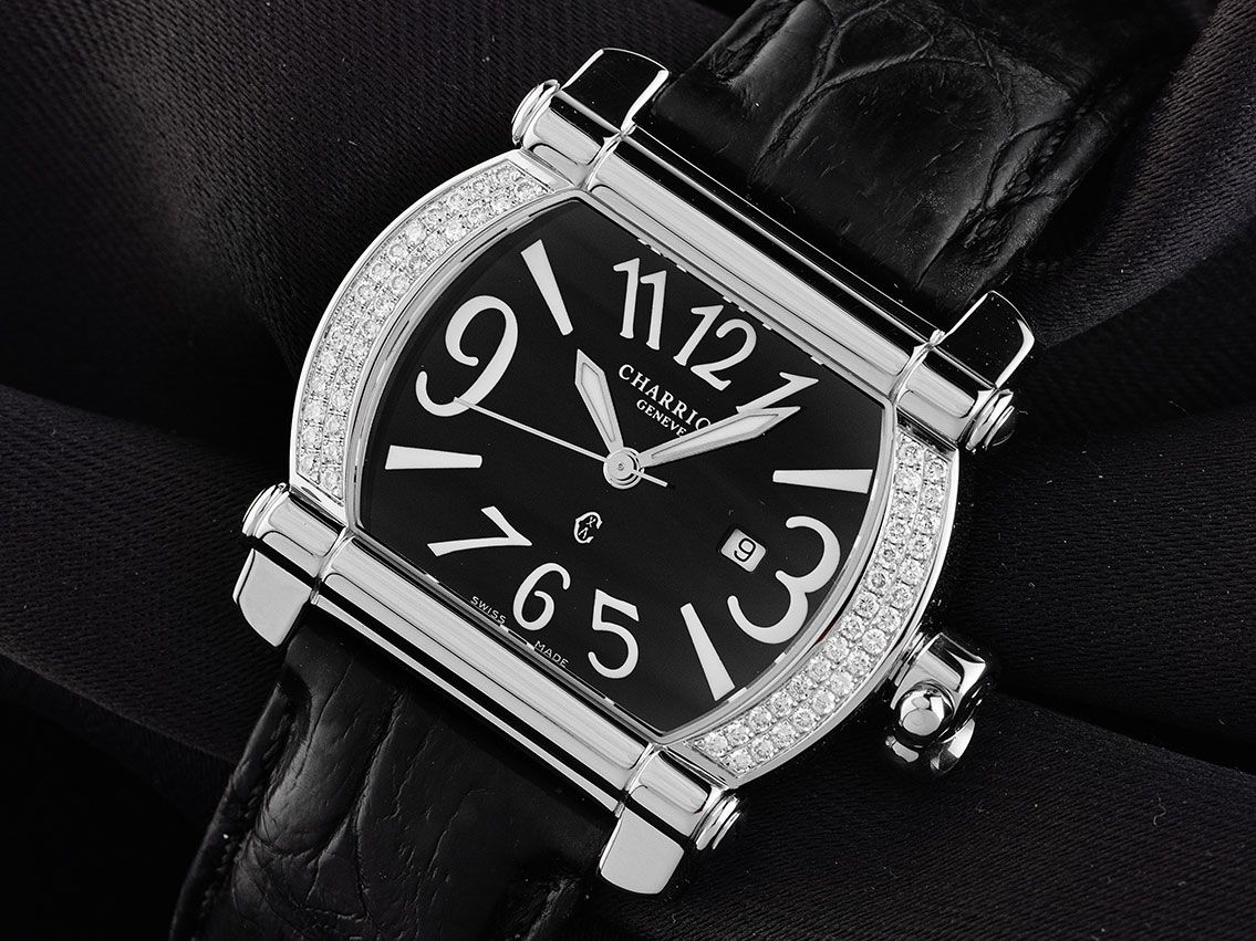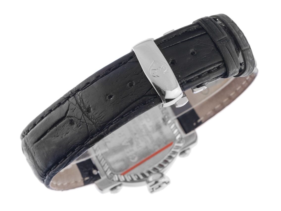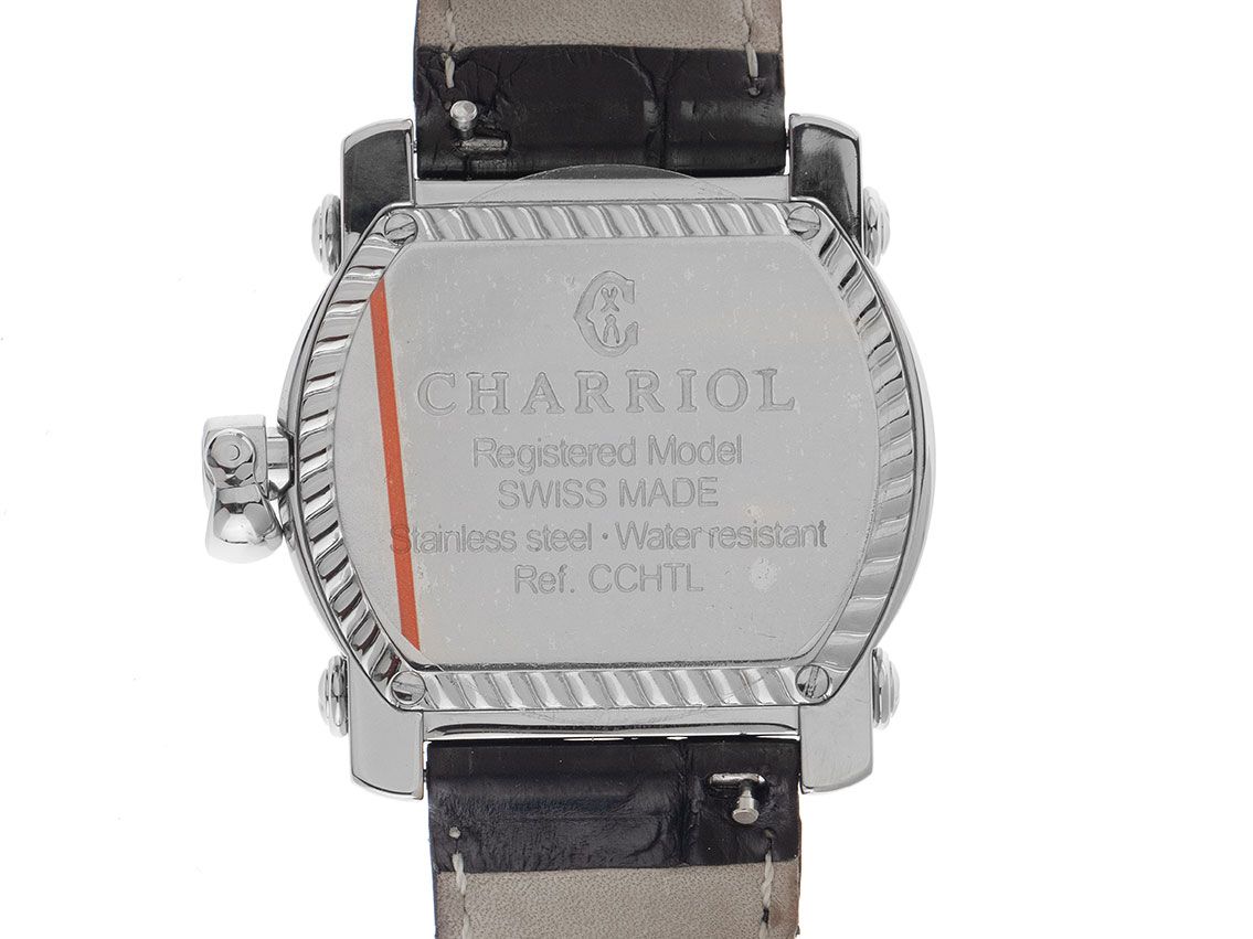Gehäuse Edelstahl poliert, Gehäusemaße ohne Krone (L x B x H) 36,5 x 35 x 8,0mm. Lünette Edelstahl poliert con diamanti. Fascia da braccio Krokoleder nera con Ziernaht, diametro 20 mm, Doppelsicherheitsfaltschließe Edelstahl con logo dell'azienda. Zifferblatt schwarz mit weißen arabischen Ziffern, weißen Indexen und Edelstahl Zeigern. Uhrwerk quarzgesteuert, Kaliber Charriol mit 7 Edelsteinen. Anzeige von Stunde, Minute und Sekunde über Zeiger aus der Mitte mit Sekundenstopp zur sekundengenauen Einstellung der Uhrzeit bei 9 Uhr, Datumsanzeige mit Schnellverstellung bei 3 Uhr. Saphirglas kratzfest e gewölbt. Krone con logo dell'azienda. Corpo Edelstahl 4-fach verschraubt e graviert. Peso dell'orologio, compresa la fascia da braccio, 55 g. Numero di riferimento: CCHTL, Gehäusenummer: 03XXX, Baujahr: 2012, ID: KRE33020225RE-2895, Artikelnummer: 10000078867. Con Gangkontrolle, nuova batteria e una completa revisione a partire da febbraio 2025, con garanzia di 1000 giorni. 1000 Tage Garantie. Scatola originale di Charriol e carta di garanzia senza garanzia, set completo. Superschnäppchen, sehr seltenes Sammlerstück. Sehr guter Zustand. Spedizione immediata.