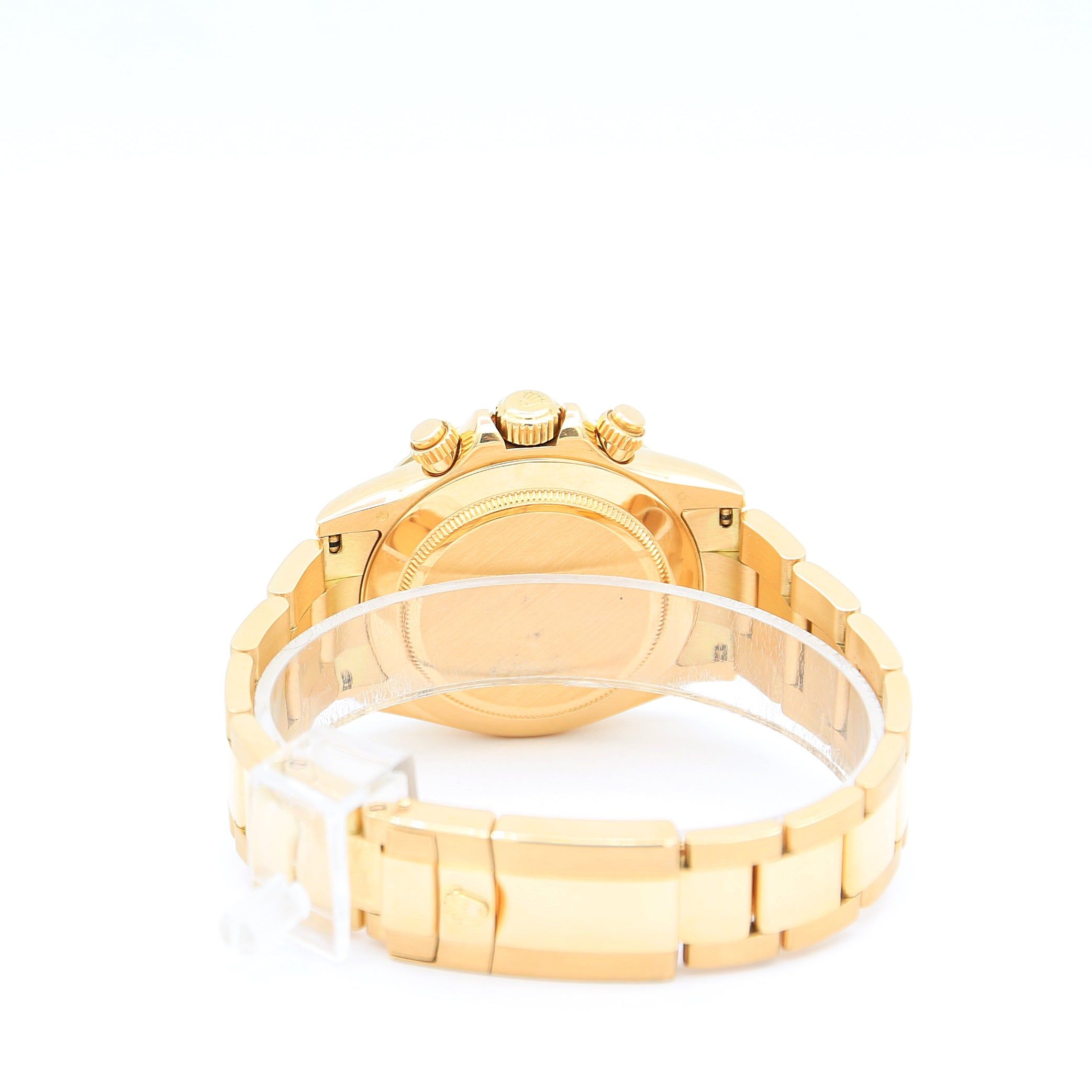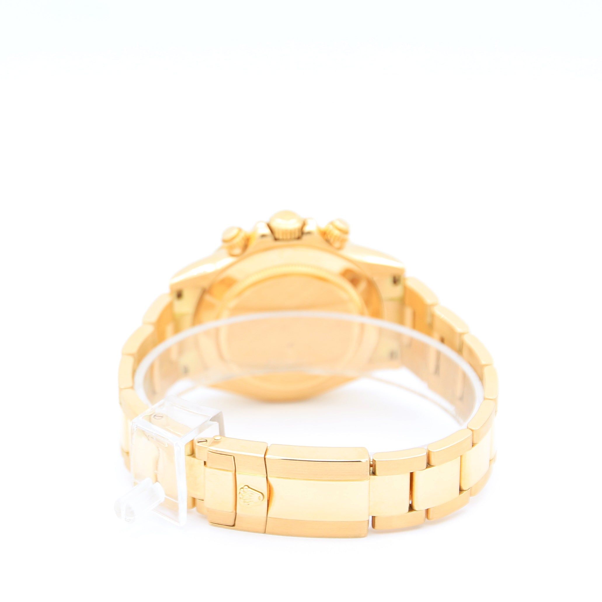 For sale at Debonar Watches: pre-owned Rolex Daytona 116528 in excellent conditions, with card Rolex and box. This 18k gold watch 40mm case carries a white dial with gold subdials and a yellow gold bracelet. Story:While the Daytona is now widely loved and worn by everyone from the newbie collector to your boss’s boss, the Rolex Daytona is firstly a racing watch.It was made for motorsport professionals and was named after the famous Daytona Beach in Florida, where numerous land speed records were broken.Introduced in 1963, the reference 6239 Daytona was the first Rolex chronograph with a tachymeter bezel that allowed its wearer to measure the speed of an object. The watch gained traction in the racing world but did not gain widespread acceptance until later, thanks in part to a handsome actor/race car driver named Paul Newman. Born in the late '80s, this reference became the first Cosmograph to offer a combination platter of metals.Over the years, the model has seen various updates and has become one of the most desirable watch models in the world. BRAND ROLEX MODEL DAYTONA REFERENCE 116528 CASE MATERIAL 18k GOLD MOVEMENT AUTOMATIC DIMENSION 40 MM DIAL WHITE W/ GOLD SUBS BEZEL 18k GOLD CRYSTAL SAPPHIRE BRACELET TYPE OYSTER BRACELET MATERIAL 18k GOLD BRACELET LENGHT 17 CM ORIGINAL BOX YES ORIGINAL PAPERS YES YEAR APPROX. '00s-'10s CONDITION EXCELLENT