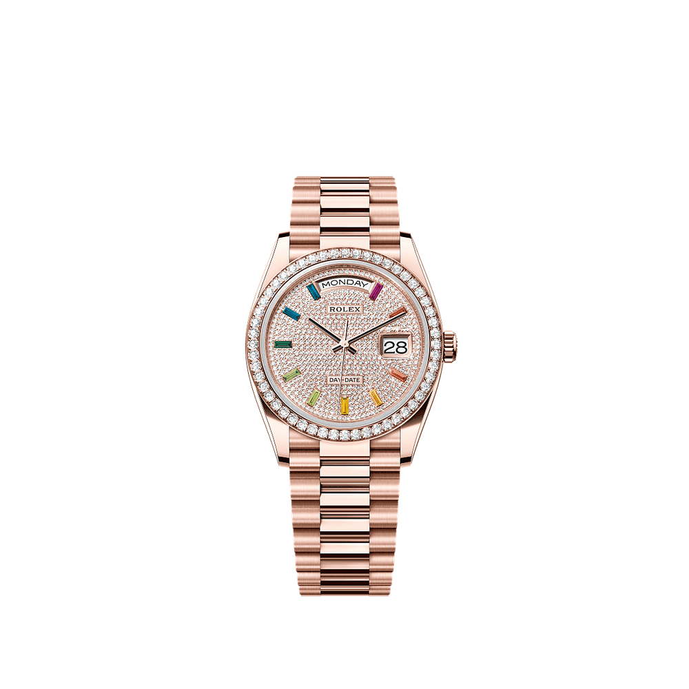 Rolex 128345RBR-0042 Day-Date 36 Oro Everose / Diamante / Arcobaleno Paved / Presidente