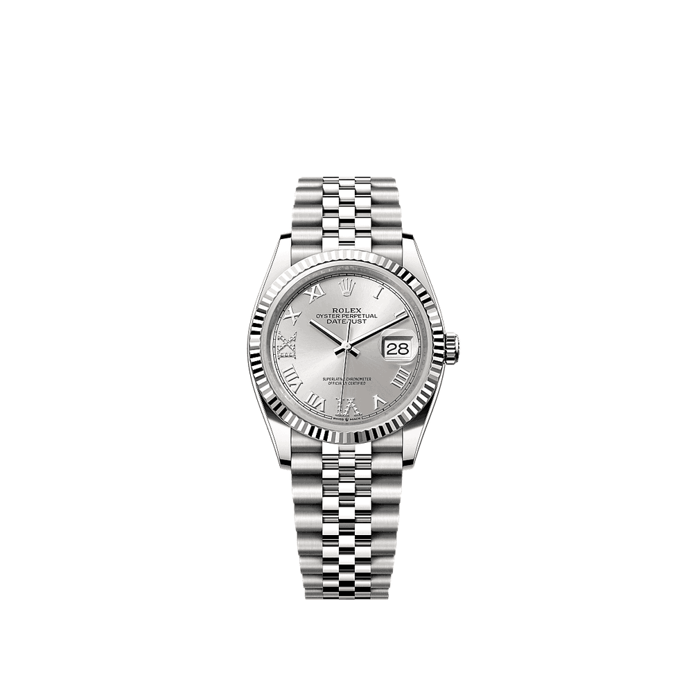 Rolex 126234-0029 Datejust 36 Stainless Steel / Fluted / Silver Roman-Diamonds / Jubilee