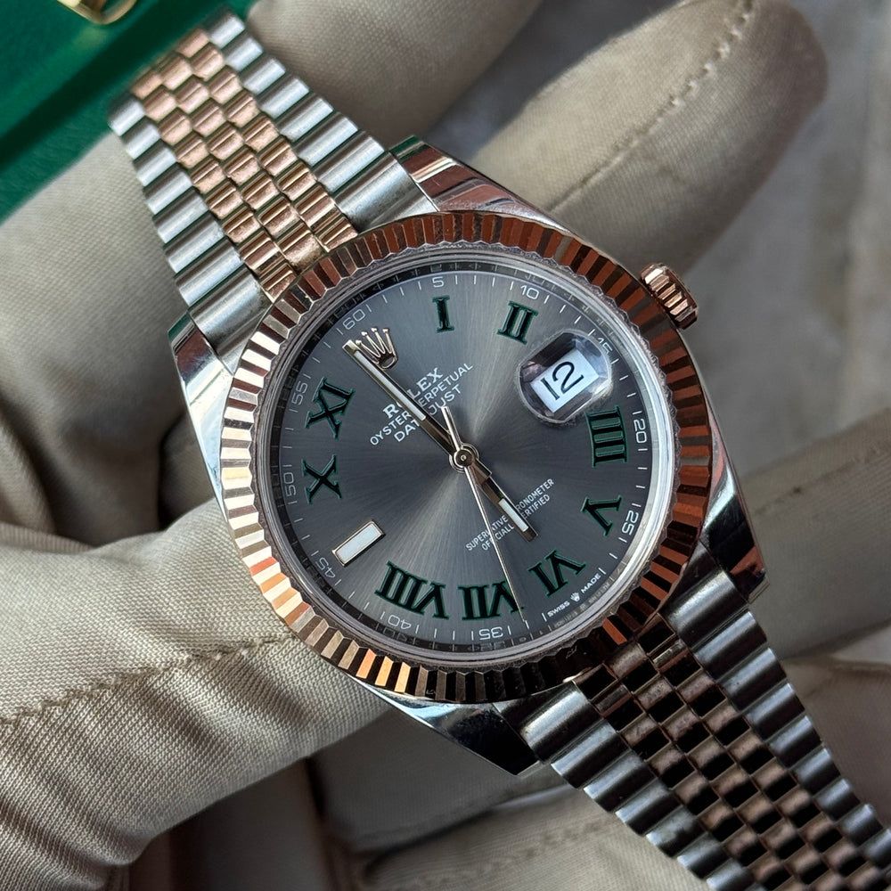 Rolex Datejust 41 Rolex 126331-0016 (Wimbledon) Datejust 41 Rolesor Everose Fluted / Jubilee / Slate - Roman