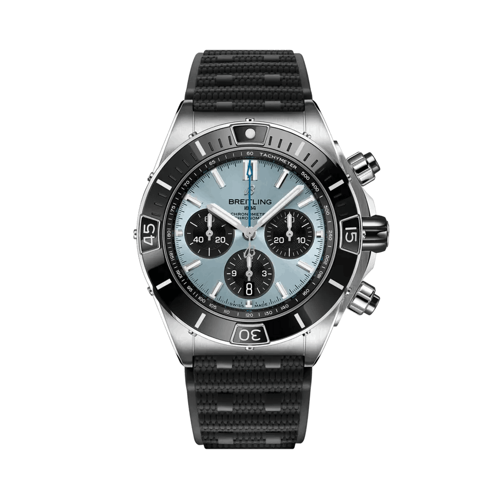 Breitling PB0136251C1S1 Chronomat B01 44 Stainless Steel - Platinum / Ice Blue / Rubber Rouleaux
