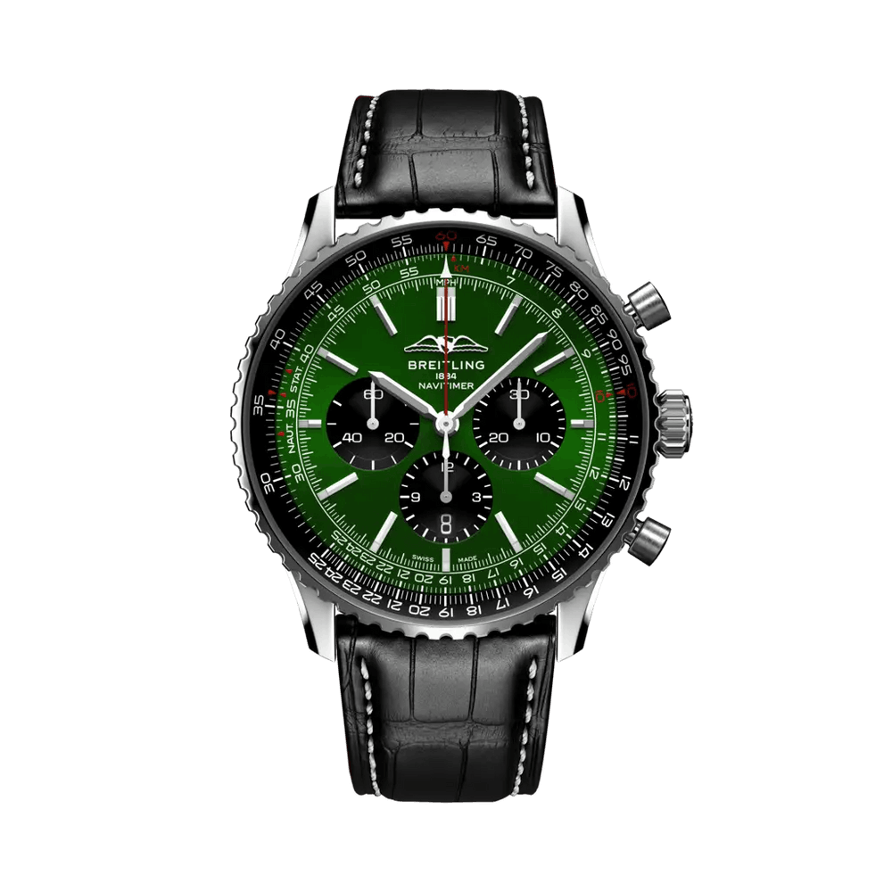 Breitling AB0137241L1P1 Navitimer B01 Chronograph 46 Stainless Steel / Green / Alligator - Folding
