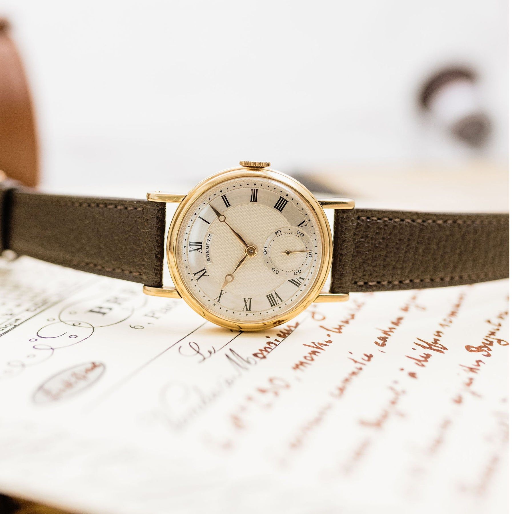 Breguet is a bewilderingly significant manufacturer with cultural significance and a profound impact on the entire history of watchmaking encapsulated in its seven-letter name. Pieces such as this Empire stand as often overshadowed evidence of the eternity of its design language. Hailing from the period before Daniel Roth worked with Jacques and Pierre Chaumet to commercialise the brand, this 1973 Empire represents one of the last periods of Breguet's 'vintage' operation and is made even more apparent due to the condition of this example.In short, it's staggering. Mindblowing original condition. Measuring 35mm in width, the case of this Empire is uber-traditional, with three key Breguet hallmarks present. Firstly, its long lugs. Perfectly straight and emerging from the mid-case, the long lugs have rounded ends and a slight downturn to sit better on the wrist. Considering the mid-sized proportions of this Breguet, these lugs play a crucial role in the wearability and character of the Empire. Secondly, the quintessential coin-edge mid-case contributes hugely to the watch's personality, a recurrence of a sophisticated theme. Finally, a smooth, domed bezel sits around the case, cleverly drawing the eye to the dial due to its narrow width.