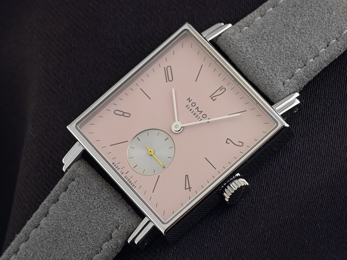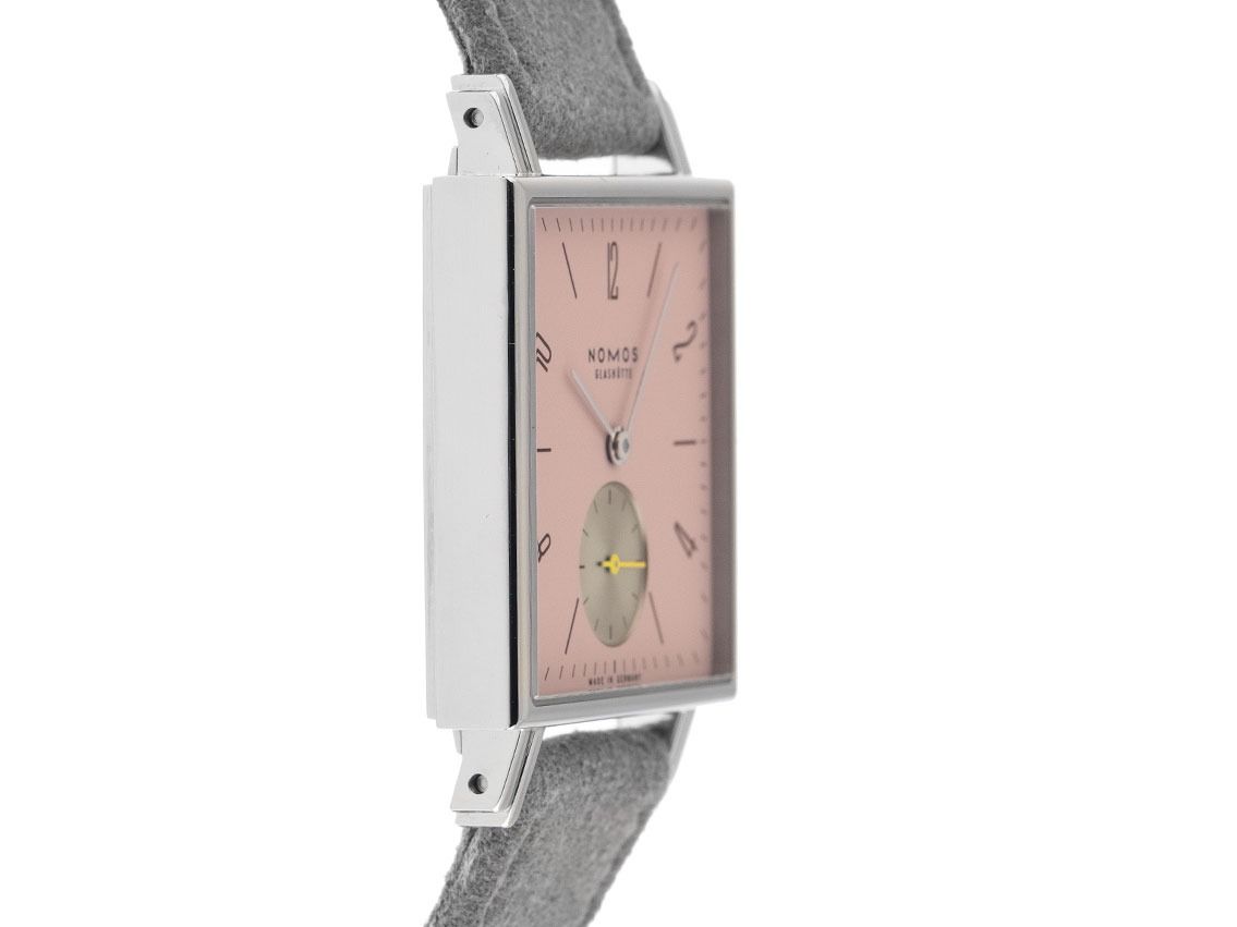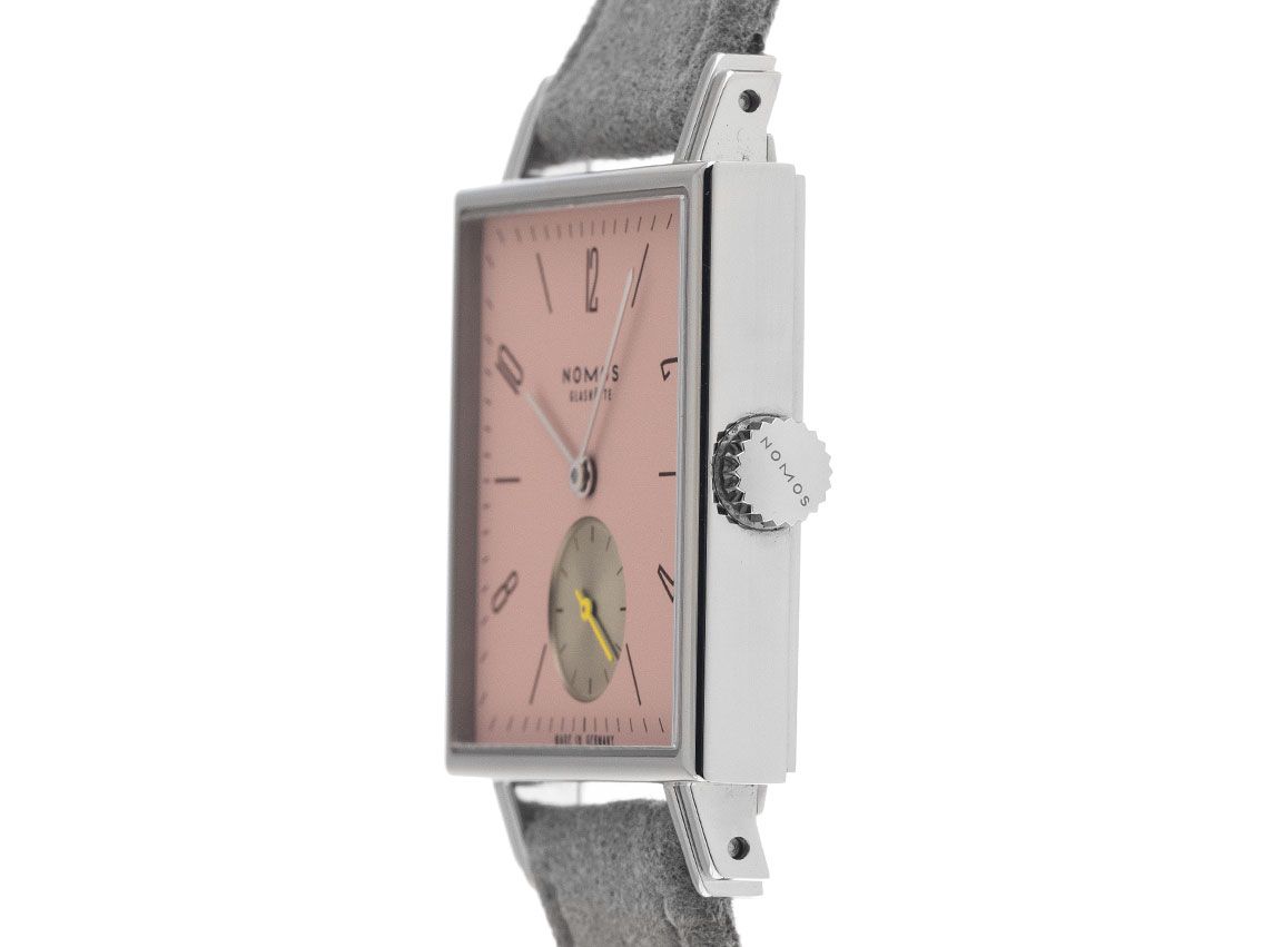 Uno dei modelli più apprezzati della collezione NOMOS è il Tangente. È caratterizzato da una cassa rotonda, lancette azzurrate, quadrante dei piccoli secondi e numeri arabi. La cassa ha un diametro di 35 mm e uno spessore di soli 6,2 mm. Si possono trovare esemplari di seconda mano a partire da 1.000€.