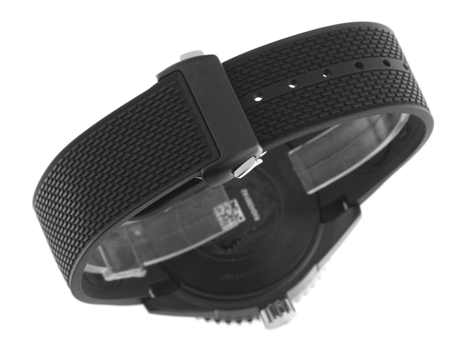 Gehäuse High-Tech Ceramic satiniert, Gehäusedurchmesser ohne Krone 43mm, Gehäusehöhe 14,6mm. Lünette Edelstahl gerädelt mit schwarzem Keramik Inlay und 60-Minuten Skala, einseitig drehbar. Fascia da braccio Kautschuk nera, spessore 20 mm. Sicherheitsfaltschließe Edelstahl con logo del produttore. Zifferblatt nero con indici e indicatori di livello beige. Uhrwerk Automatik, Kaliber R763, Gangreserve ca. 80 Stunden. Anzeige von Stunde, Minute und Sekunde über Zeiger aus der Mitte mit Sekundenstopp zur sekundengenauen Einstellung der Uhrzeit, Datumsanzeige mit Schnellverstellung bei 3 Uhr. Saphirglas kratzfest e gewölbt. Krone verschraubbar con logo dell'azienda. Corpo in Ceramica High-Tech rigato e grave. Peso dell'orologio, compresa la fascia da braccio, 119 g. Capacità di carico fino a 30 ATM. Numero di riferimento: R32129158, ID: KSTB149644320525H-3700, Artikelnummer: 10000080452. Scatola originale Rado con cartone e carta di garanzia e descrizione, set completo. Non usato. Consegna immediata.