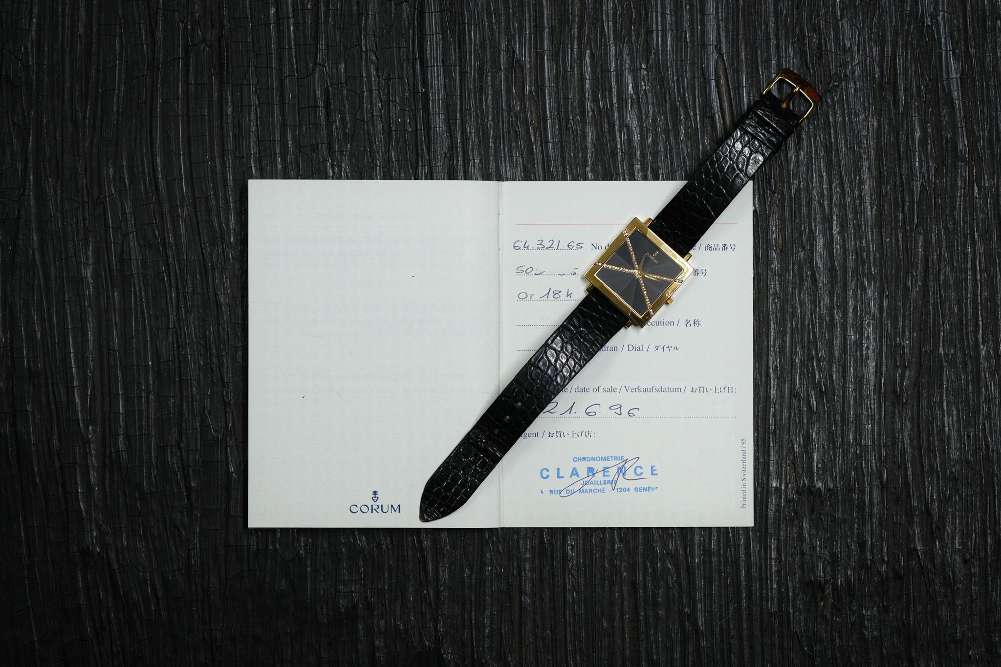 Completing the set are the original Corum gold buckle and Corum leather strap, both still present and well-preserved, underscoring the historic integrity of this piece.