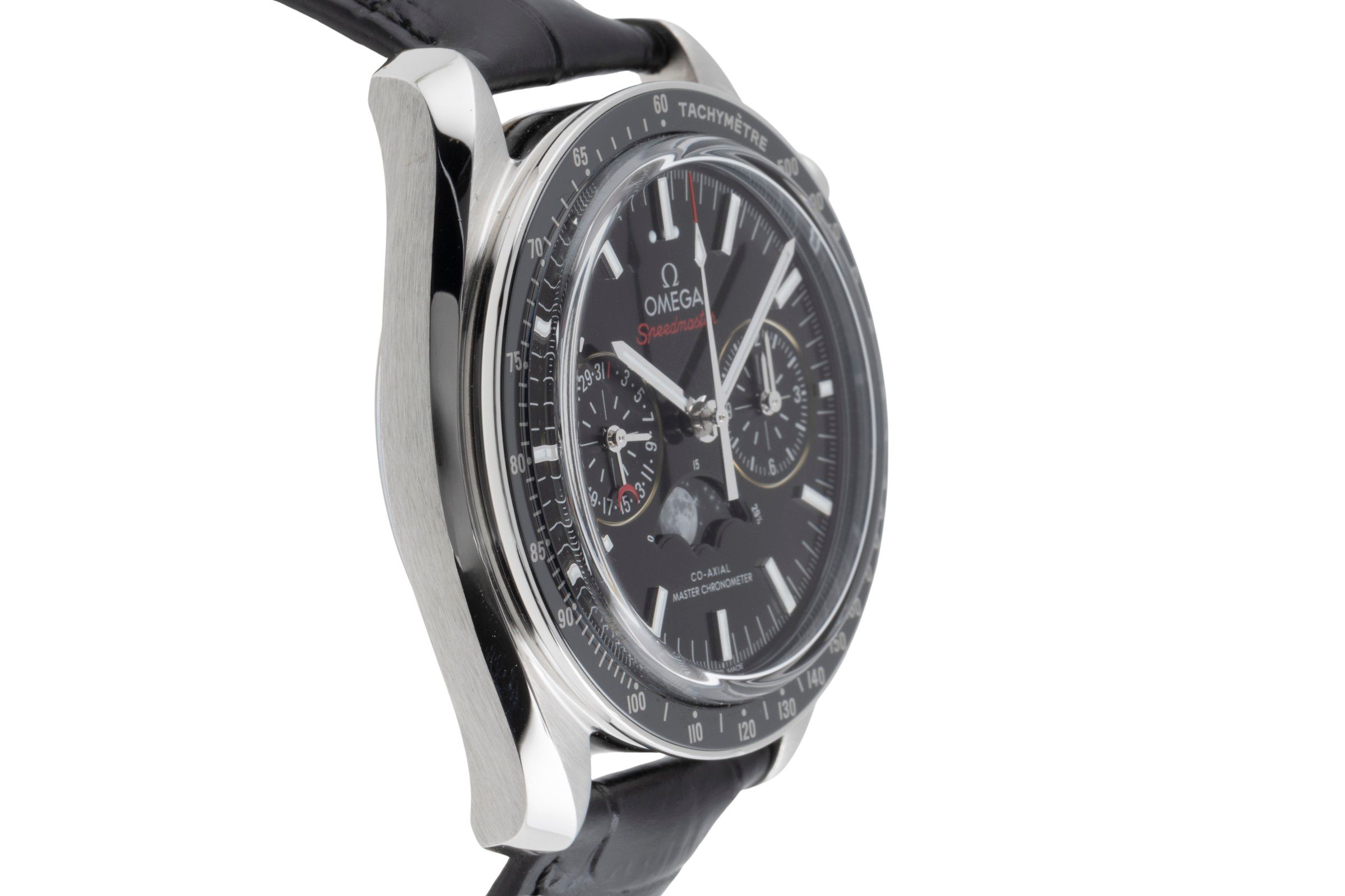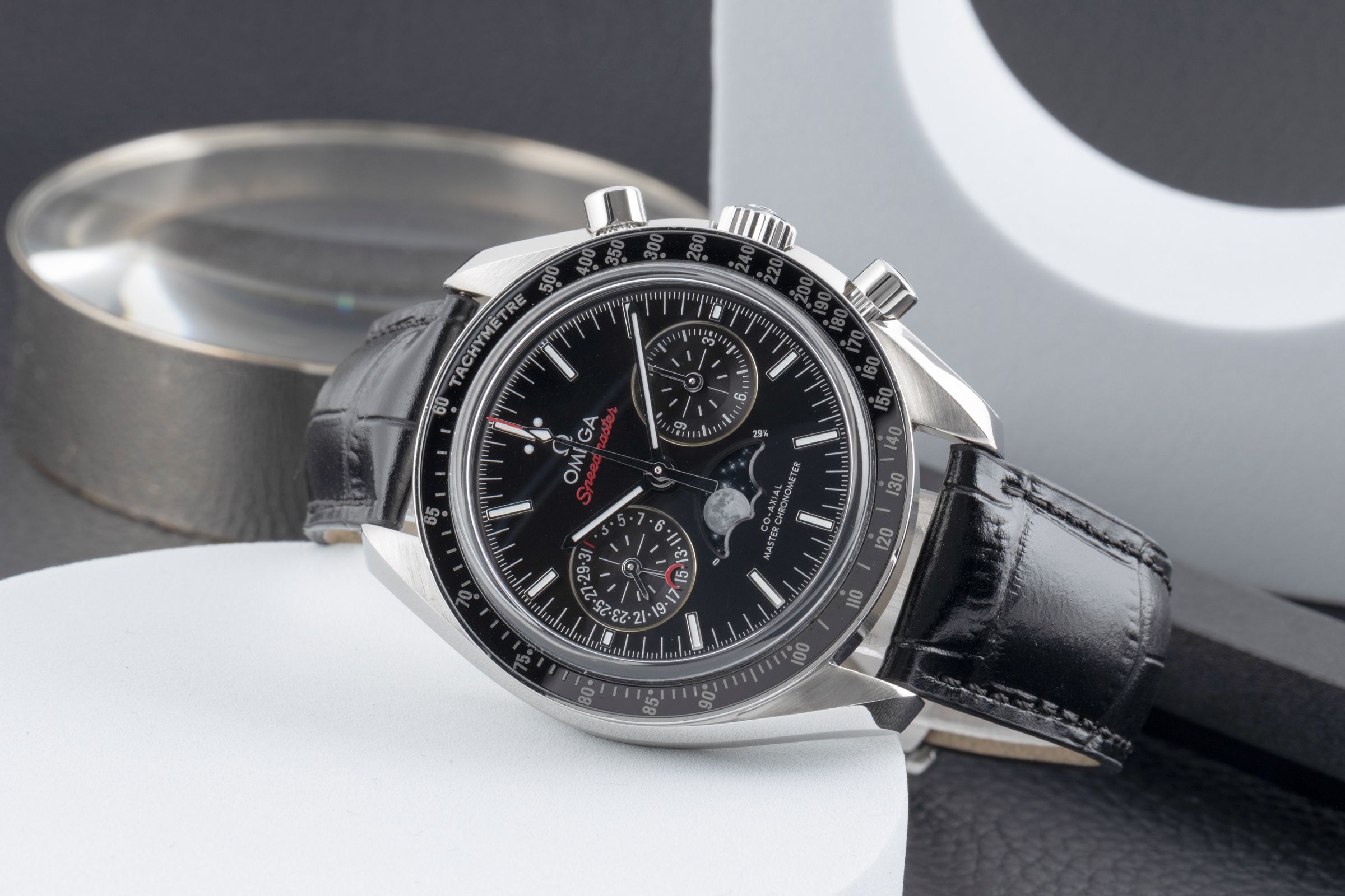 Alternative title: Omega 304.33.44.52.01.001 Speedmaster Moonphase Chronograph Master Chronometer Stainless Steel / Black; Omega Speedmaster Moonwatch Mondphase 304.33.44.52.01.001 B&P NP: 12200,- € [2502994]