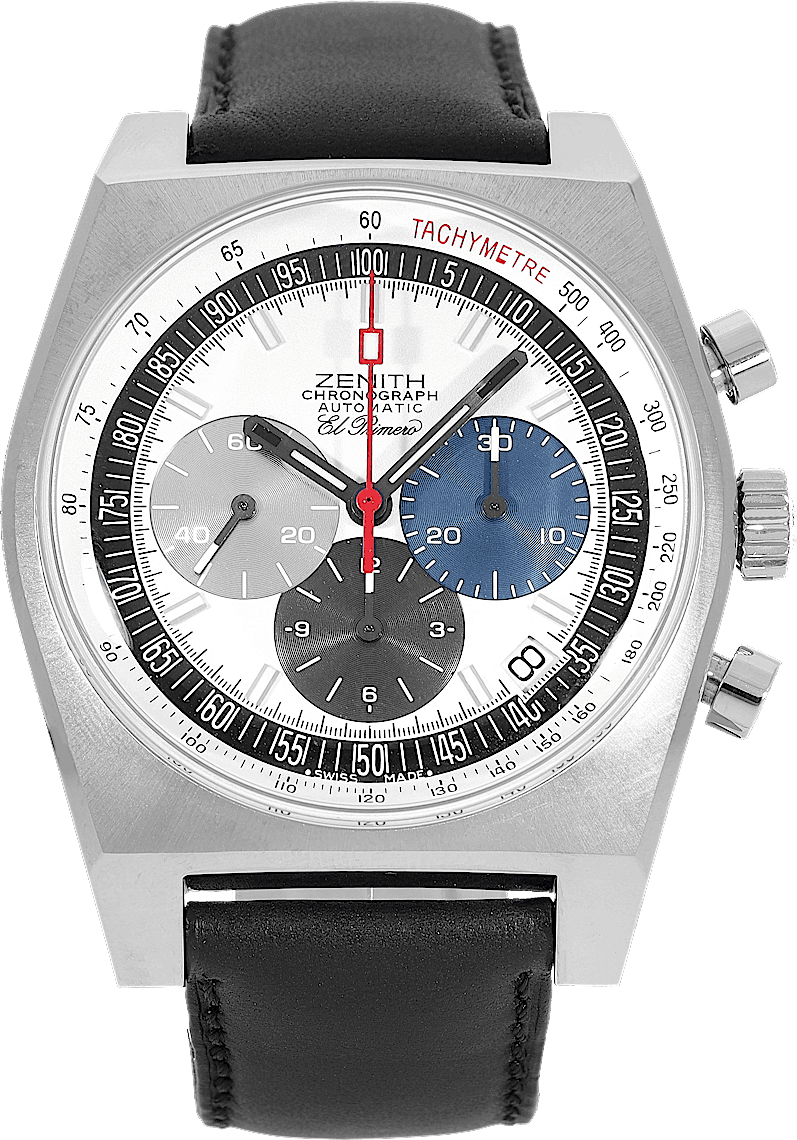 Zenith El Primero Vintage 1969 Reedition Limited Edition, Reference: 03.1969.469/1, Gender: Male, Size: 40mm, Dial color: White, Strap material: Calf Leather, Movement: Automatic, Year: 1999, Condition: Previously worn, minor to no signs of usage. The movement is flawless and the case has been cleaned. watch tested ensure full functionality. An inspection by our certified watchmakers guarantees its authenticity., Documents: Original papers, CHRONEXT Certificate