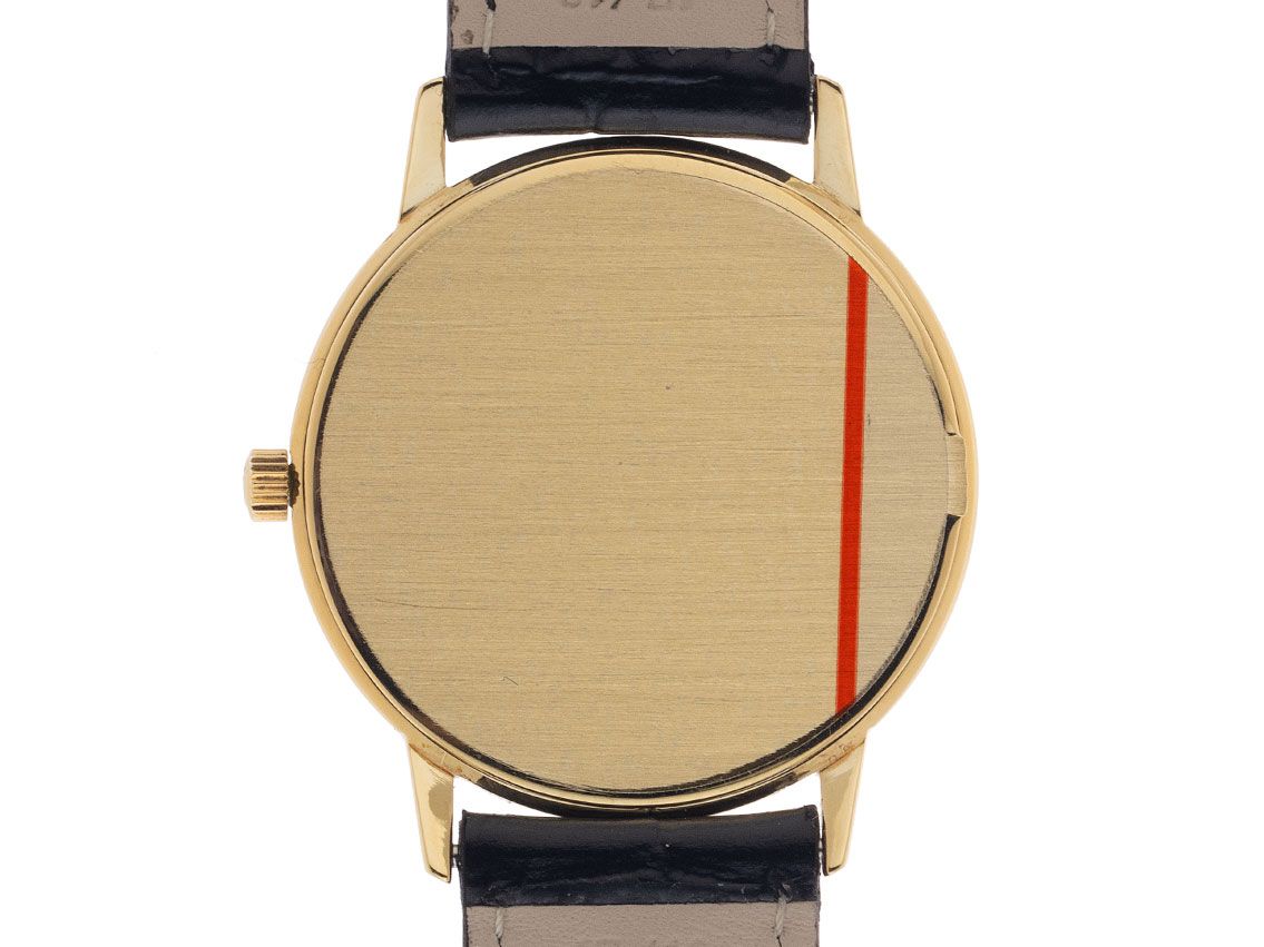 Gehäuse 18kt Gelbgold poliert, Gehäusedurchmesser ohne Krone 33mm, Gehäusehöhe 6,0mm. Fascia da braccio Krokoleder schwarz con Ziernaht, Anstoßbreite 18mm, Stiftschließe Gelbgold vergoldet. Zifferblatt champagnerfarben con indici in gelbgolden e zeigern in gelbgolden. Orologio da polso quarzgesteuert, calibro IWC 2250 con 7 Edelsteinen. Anzeige von Stunde, Minute und Sekunde über Zeiger aus der Mitte mit Sekundenstopp zur sekundengenauen Einstellung der Uhrzeit, Datumsanzeige mit Schnellverstellung bei 3 Uhr. Saphirglas kratzfest. Krone geriffelt mit Hersteller-Logo. Corpo 18kt Gelbgold. Peso dell'orologio, compresa la fascia da braccio, 36 g. Numero di riferimento: 3513, Gehäusenummer: 2391XXX, ID: P112826000725H-4800, Artikelnummer: 10000081109. Con Gangkontrolle, nuova batteria e un'ultima modifica del 2025. Scatola originale IWC e Watchregister Auszug von Juli 2025, The Watch Register Zertifikat / ohne Eintrag (Internationale Datenbank für verlorene oder gestohlene Uhren). Superschnäppchen, extrem seltenes Sammlerstück. Sehr guter Zustand. Lieferzeit sofort.