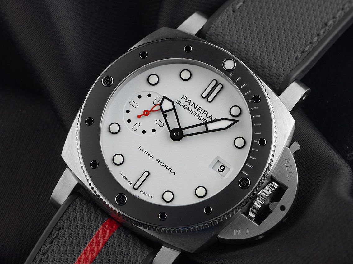 Panerai Submersible Luna Rossa Stahl Automatik Armband Textil Kautschuk