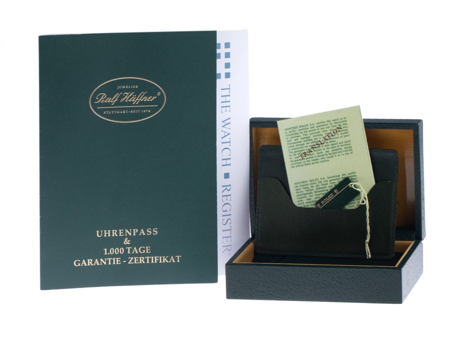 Inklusive certified pre owned Zertifikat / Uhrenpass mit einem Farbbild, der genauen Beschreibung sowie dem Wiederbeschaffungswert der Uhr über 4200,-€ und 1000 Tage Garantie ab Kaufdatum.