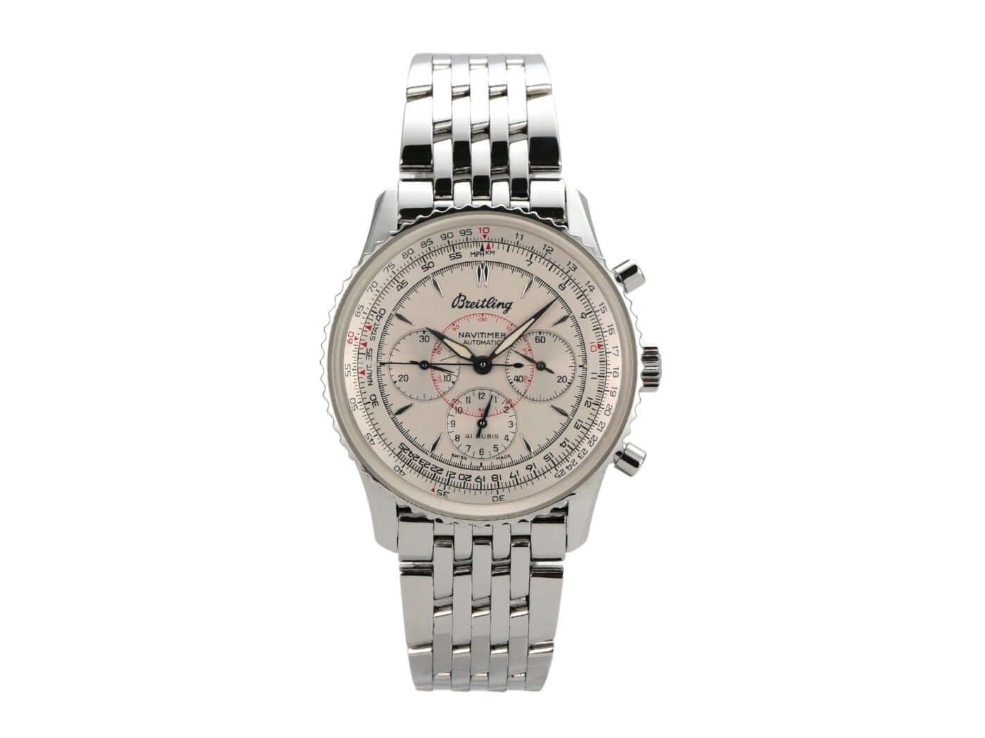 Breitling Navitimer Montbrillant A30030-045Gehäuse Edelstahl poliert, Gehäusedurchmesser 38 mm, Gehäusehöhe 13 mm, Edelstahl Lünette mit Rechenschieber beidseitig drehbar, Edelstahl Armband poliert mit Sicherheitsfaltschließe, Zifferblatt silberfarben, Automatikwerk, Chronograph, Kaliber Breitling 30 mit 41 Steine, 28.800 A/h, Edelstahlboden verschraubt und graviert, wasserdicht bis zu 3 bar. Gebrauchte Uhr, sehr guter Zustand, komplett mit Box und Papieren, deutsche Auslieferung aus 2002.
