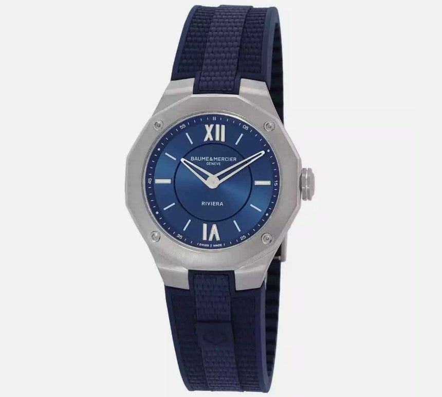 Baume & Mercier Riviera 10689 Quarzuhr, 36 mm Stahl Zwölfeckig, Kautschuk, Blau-Blau