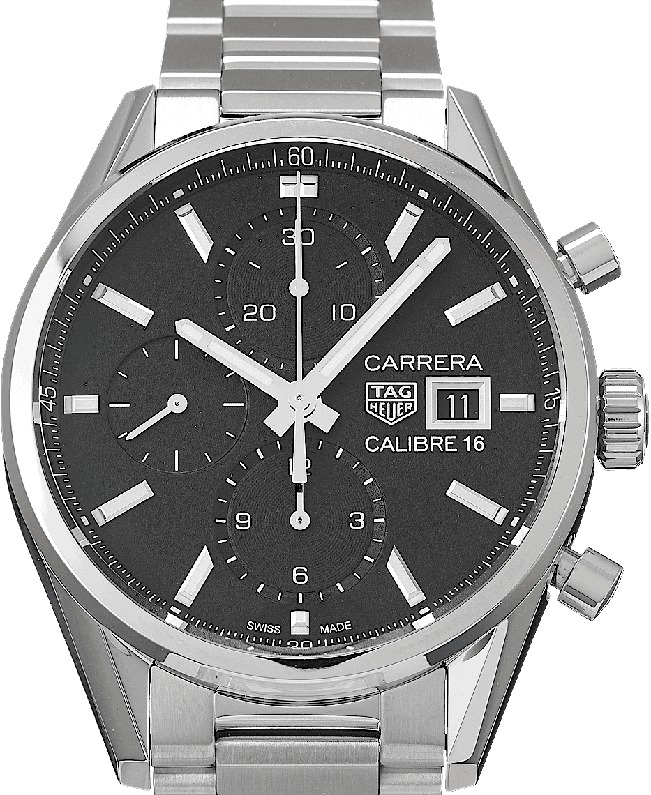 TAG Heuer Carrera Calibre 16, Reference: CBK2110.BA0715, Gender: Male, Size: 41mm, Dial color: Black, Strap material: Stainless Steel, Movement: Automatic, Year: 2025, Condition: New and unworn. An inspection by our certified watchmakers guarantees authenticity., Documents: Original papers, CHRONEXT Certificate