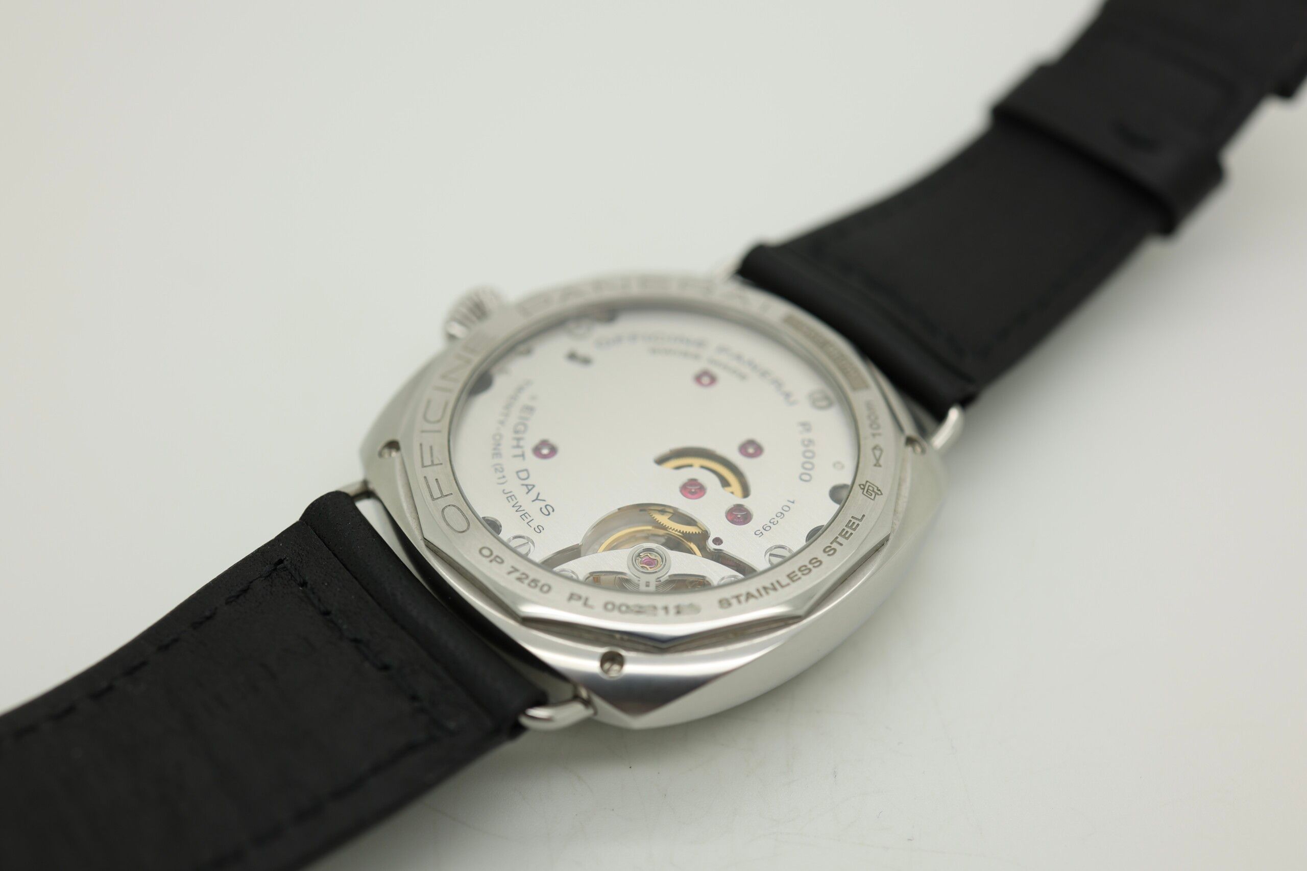 Curiosità: il movimento di 8 giorni rende omaggio ai modelli militari vintage di Panerai, che erano progettati per funzionare un'intera settimana più un giorno senza ricarica - ideale per le missioni in cui la ricarica dell'orologio non era esattamente una priorità.