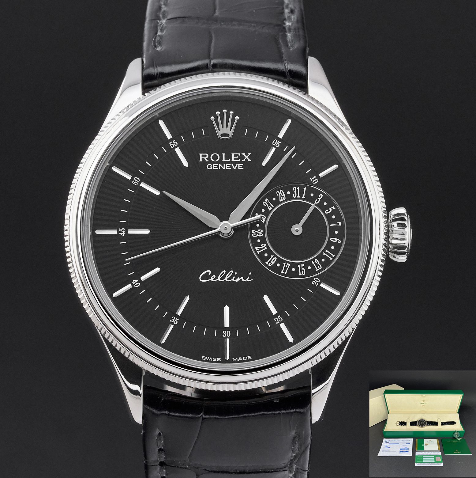 Rolex Cellini Date Rolex Cellini Date, 50519, 39mm, 2016, White Gold, Black Guilloche dial, Fullset, 1yr warranty