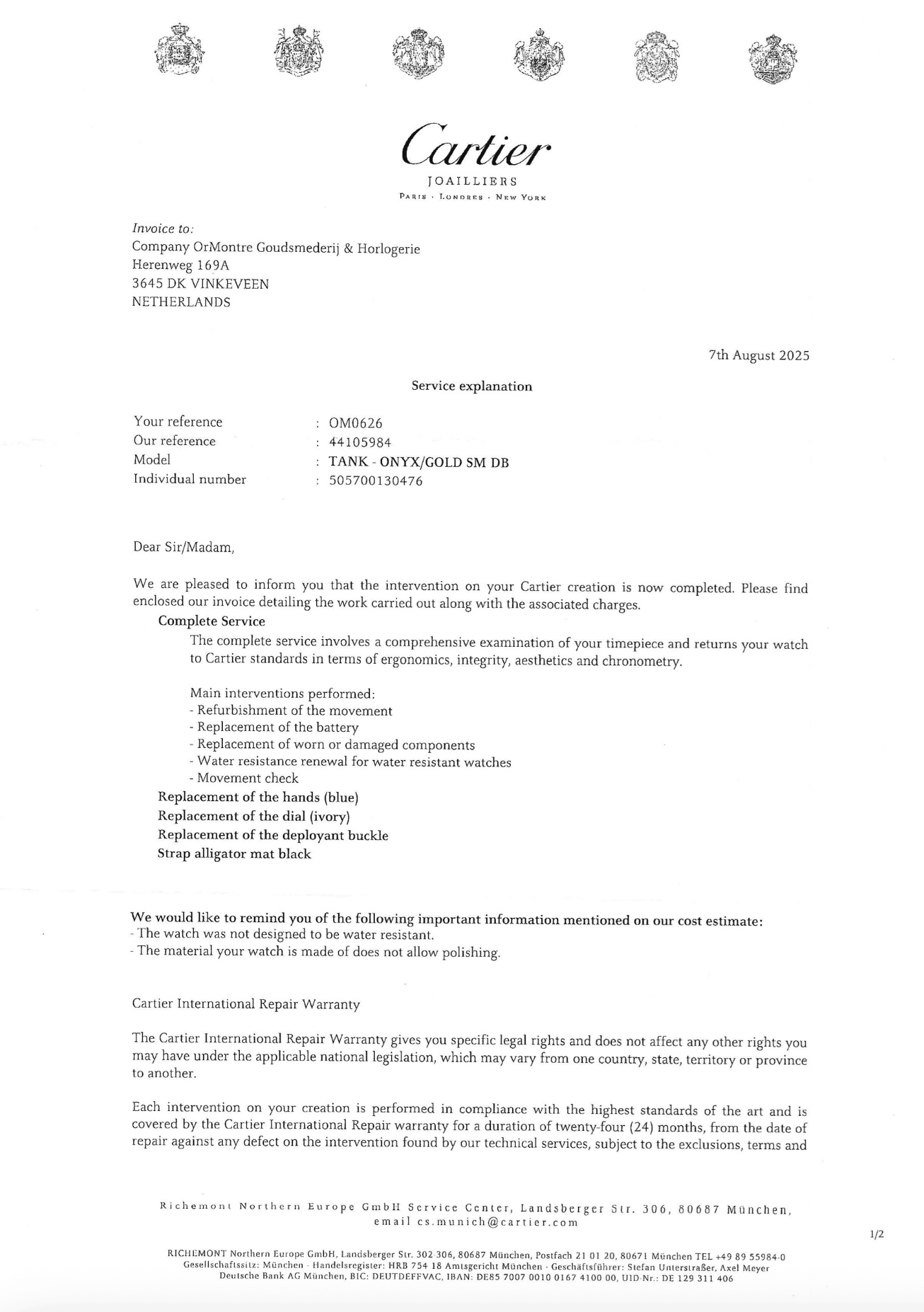 Service: Cartier 07-08-2025