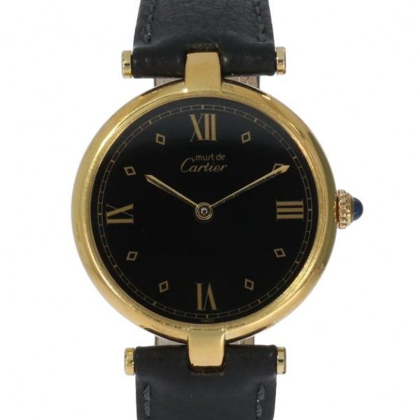 Cartier Tank Vendome VLC Vermeil 590003. Cartier Vermeil, Large round model goldplated silver case. Generic black leather strap and pinbuckle Box and a certificate with 12 months warranty of our shop