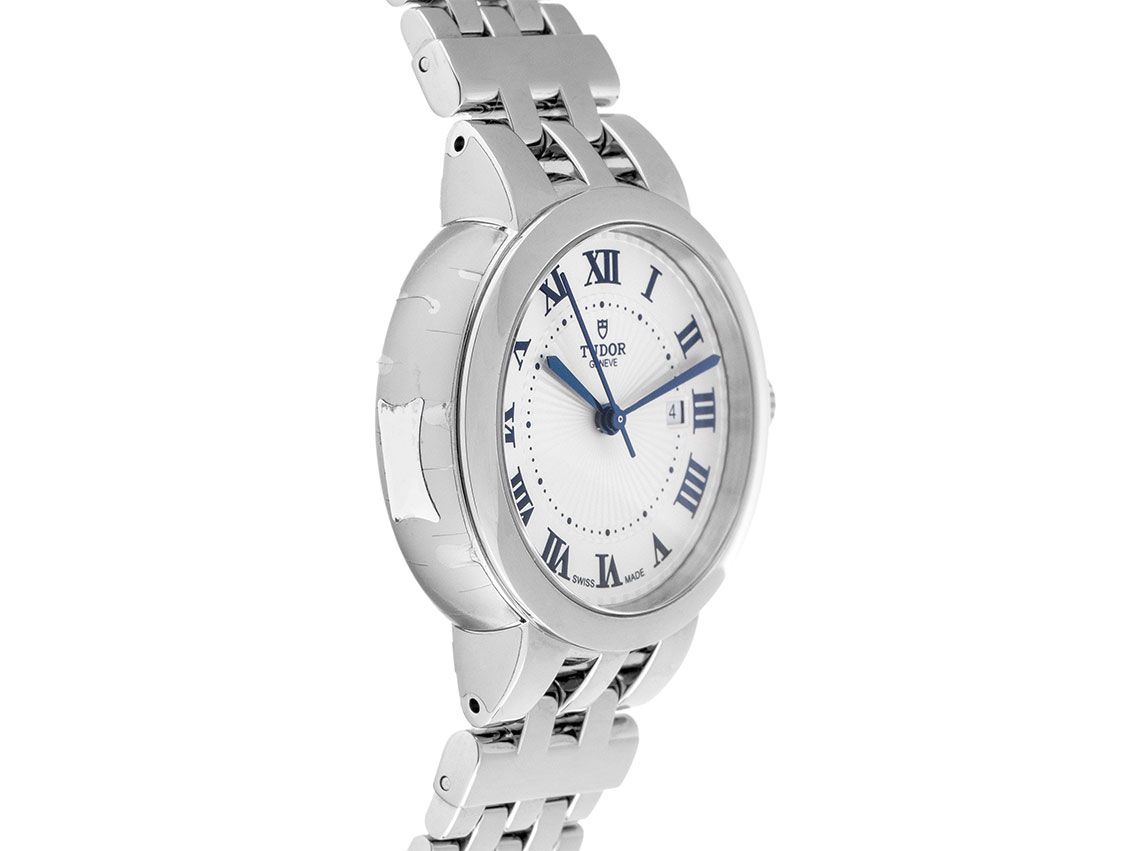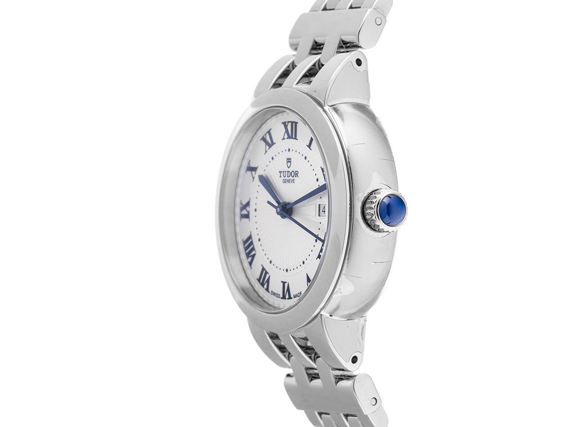 Tudor Clair de Rose Stahl Automatik Armband StahlGehäuse Edelstahl poliert, Gehäusedurchmesser ohne Krone 30mm, Gehäusehöhe 10,6mm. Lünette Edelstahl glatt und poliert. Armband Edelstahl poliert, Sicherheitsfaltschließe Edelstahl mit Hersteller Logo. Zifferblatt silberfarben mit nachtblauen römischen Ziffern und gebläuten Zeigern. Uhrwerk Automatik, Kaliber T201, Gangreserve ca. 38 Stunden. Anzeige von Stunde, Minute und Sekunde über Zeiger aus der Mitte mit Sekundenstopp zur sekundengenauen Einstellung der Uhrzeit, Datumsanzeige mit Schnellverstellung bei 3 Uhr. Saphirglas kratzfest und gewölbt. Krone verschraubbar mit blauen Spinell Cabochon. Boden Edelstahl verschraubt und graviert. Gewicht der Uhr inklusive Armband 75g, Länge des Armbandes inklusive Gehäuse 170mm. Wasserdicht bis 10 ATM. Referenznummer: M35500-0001, ID: ST580640460925H-2760, Artikelnummer: 10000082329. Original Tudor Box mit Umkarton und Garantie Papiere von August 2025, Full Set. Ungetragen. Lieferzeit sofort.