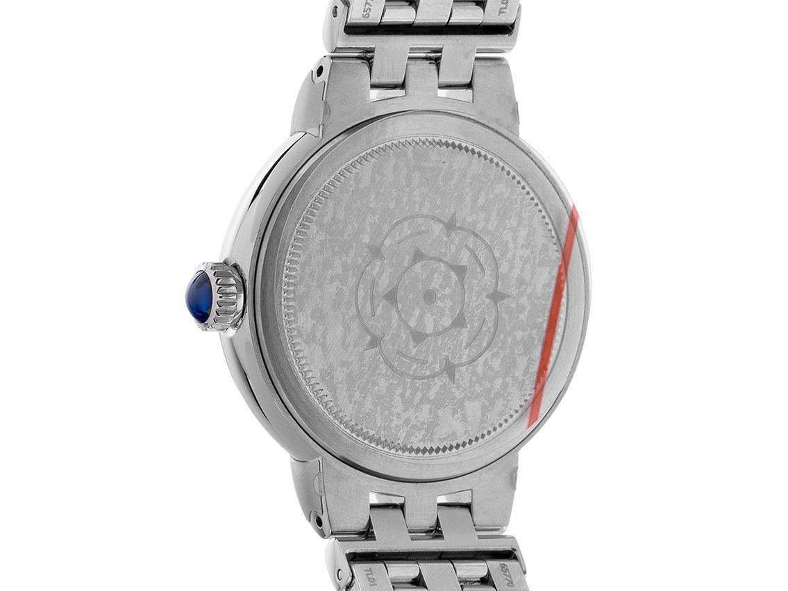 Gehäuse Edelstahl poliert, Gehäusedurchmesser ohne Krone 30mm, Gehäusehöhe 10,6mm. Lünette Edelstahl glatt e poliert. Bracciale Edelstahl lucido, Sicherheitsfaltschließe Edelstahl con logo dell'azienda. Zifferblatt silberfarben con nachtblauen römischen Ziffern e gebläuten Zeigern. Uhrwerk Automatik, Kaliber T201, Gangreserve ca. 38 Stunden. Anzeige von Stunde, Minute und Sekunde über Zeiger aus der Mitte mit Sekundenstopp zur sekundengenauen Einstellung der Uhrzeit, Datumsanzeige mit Schnellverstellung bei 3 Uhr. Saphirglas kratzfest e gewölbt. Corona in vetro scuro con spinello cabochon blu. Corpo di Edelstahl inverdito e grave. Peso dell'orologio con bracciale incluso 75 g, lunghezza del bracciale con gehäuse incluso 170 mm. Wasserdicht bis 10 ATM. Numero di riferimento: M35500-0001, ID: ST580640460925H-2760, Artikelnummer: 10000082329. Scatola originale Tudor con cartone e garanzia cartacea dell'agosto 2025, set completo. Non usato. Lieferzeit sofort.