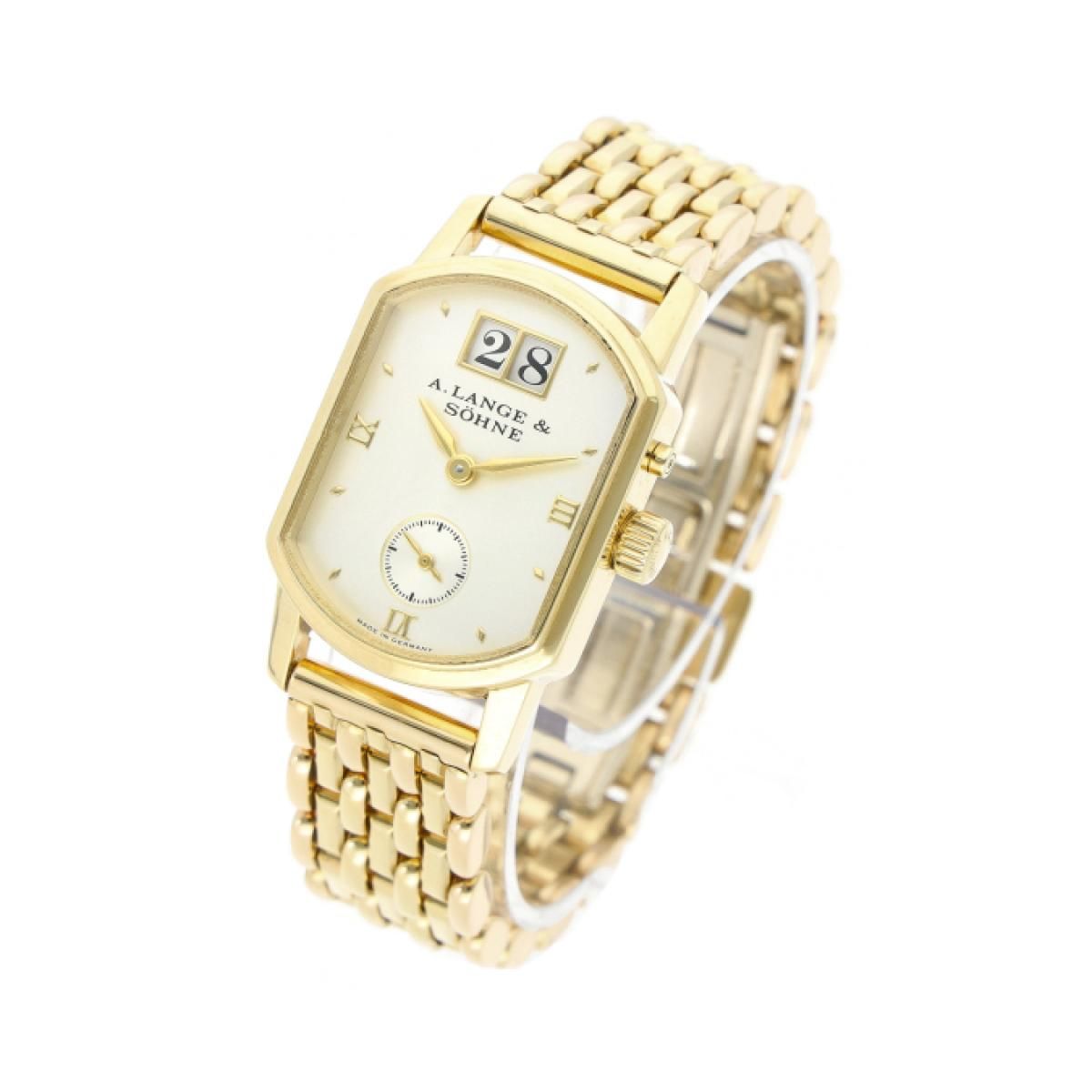 A. Lange Söhne Arkade from 1997 with a 22 x 36 mm yellow gold case and double folding clasp. This ladies' A. Lange Söhne watch is in very good condition.Very good condition