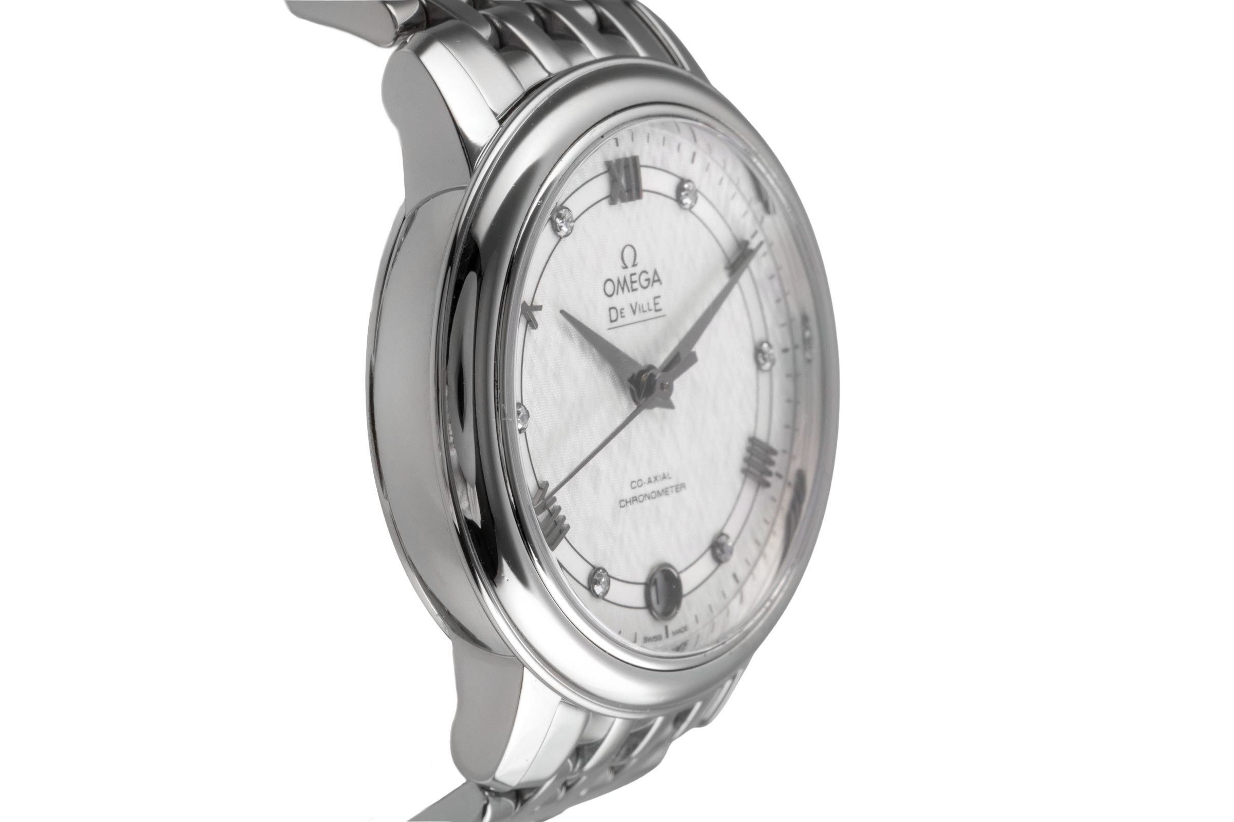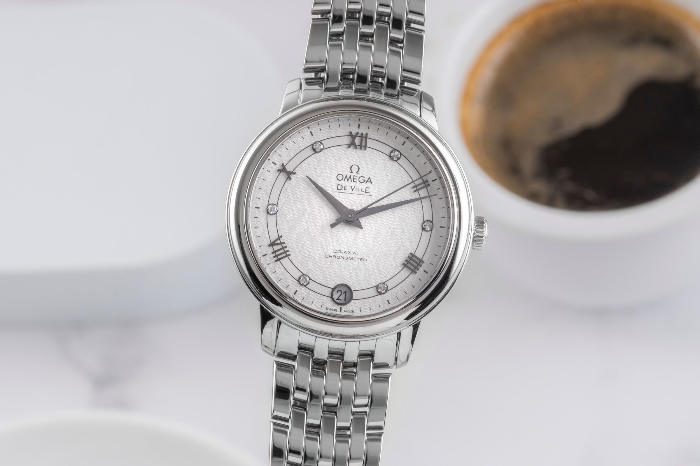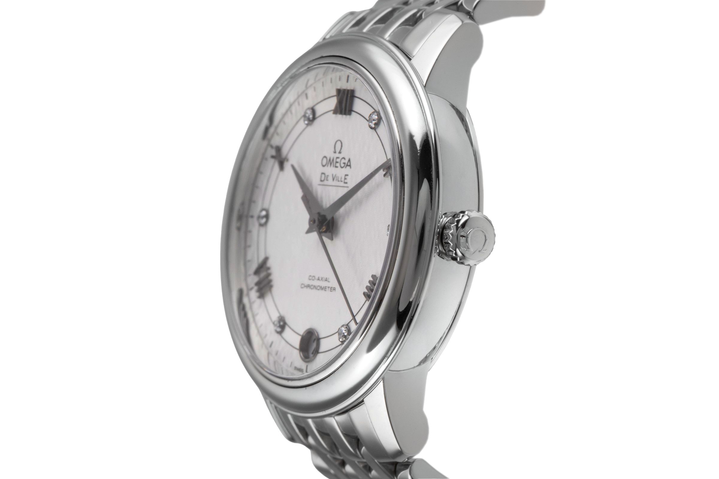 Alternative title: Omega 424.10.33.20.52.002 De Ville Prestige Co-Axial 32.7 Stainless Steel / Vintage Silk Silver / Bracelet; Omega De Ville Stahl Automatik Damenuhr Diamonds Ref. 424.10.33.20.52.002 [2504891]