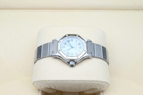 Cartier Santos Octagon 0906 del 1985 in eccellenti condizioni, compresa la confezione originale. Tutti i nostri orologi sono stati controllati a fondo dal nostro orologiaio e serviti quando necessario.
