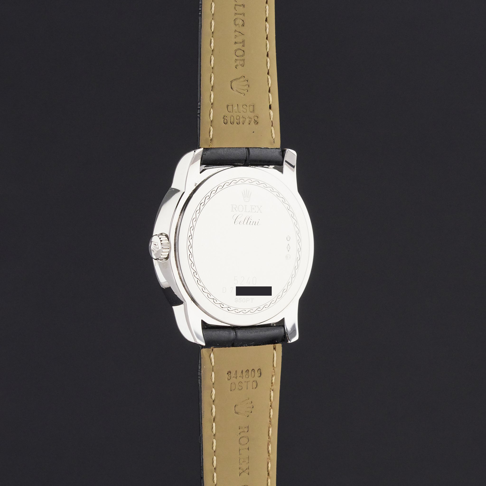 This Rolex Cellini Cellinium 5240 features a Mother of Pearl Arabic dial and is crafted from platinum, with a production year of 2005.Case No: D75XXXX