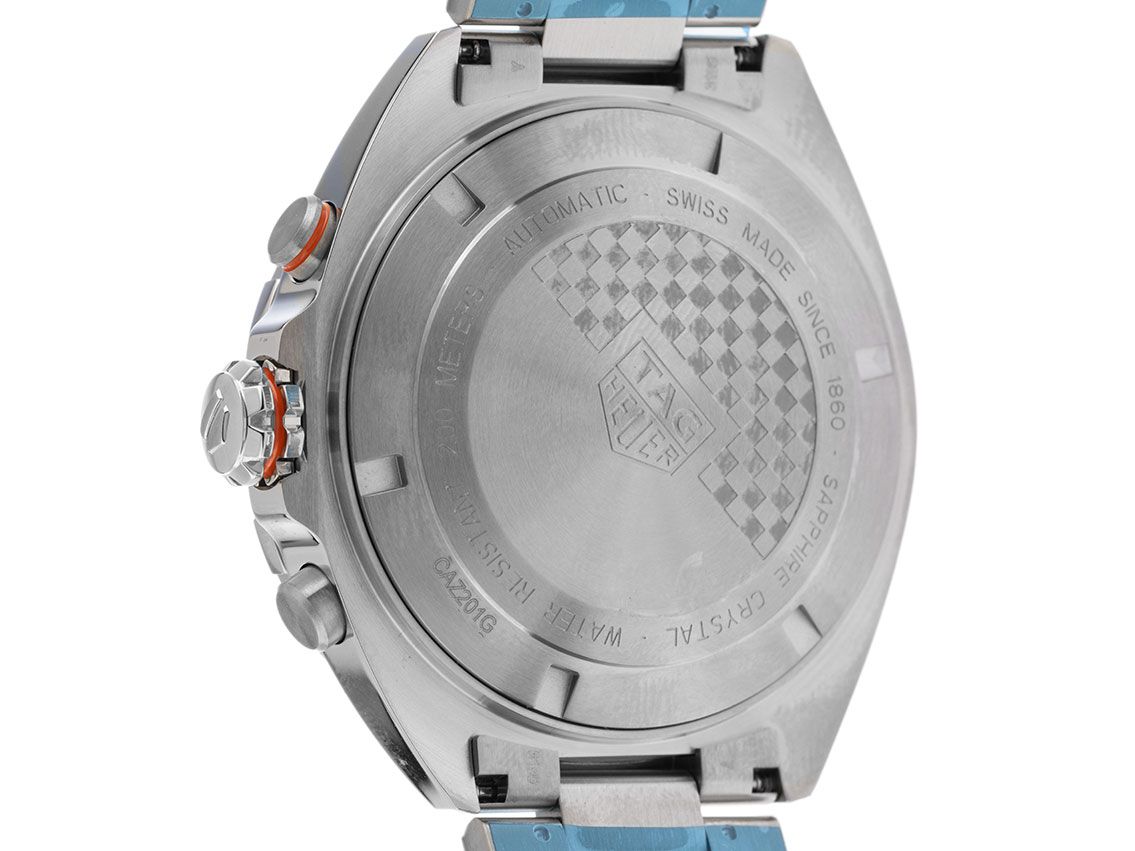 Cassa in acciaio inox lucido e satinato, diametro cassa senza corona 44mm, altezza cassa 15,1mm. Lunetta in acciaio inox con inserto in ceramica blu e scala tachimetrica incisa. Bracciale in acciaio inox lucido e satinato, chiusura pieghevole di sicurezza in acciaio inox con logo del produttore. Quadrante blu con indici luminosi in acciaio inox applicati e lancette luminose in acciaio inox lucidato. Movimento automatico, cronografo, Tag Heuer Calibre 16, riserva di carica di circa 42 ore. Indicazione di ore e minuti tramite lancette centrali, piccolo secondo con fermo secondo per la regolazione precisa dell'ora a 9 ore, indicazione della data con regolazione rapida a 3 ore. Vetro zaffiro antigraffio. Corona a vite con logo del produttore. Fondello in acciaio inox avvitato e inciso con rilievo Tag Heuer. Peso dell'orologio incluso il bracciale 215g, lunghezza del bracciale incluso la cassa 200mm. Impermeabile fino a 20 ATM. Numero di riferimento: CAZ201G.BA0876, ID: ST580653301025H-4250, numero articolo: 10000082458. Scatola originale Tag Heuer con imballaggio e documenti di garanzia del 2025, oltre alla descrizione, Full Set. Mai indossato. Tempi di consegna immediati.