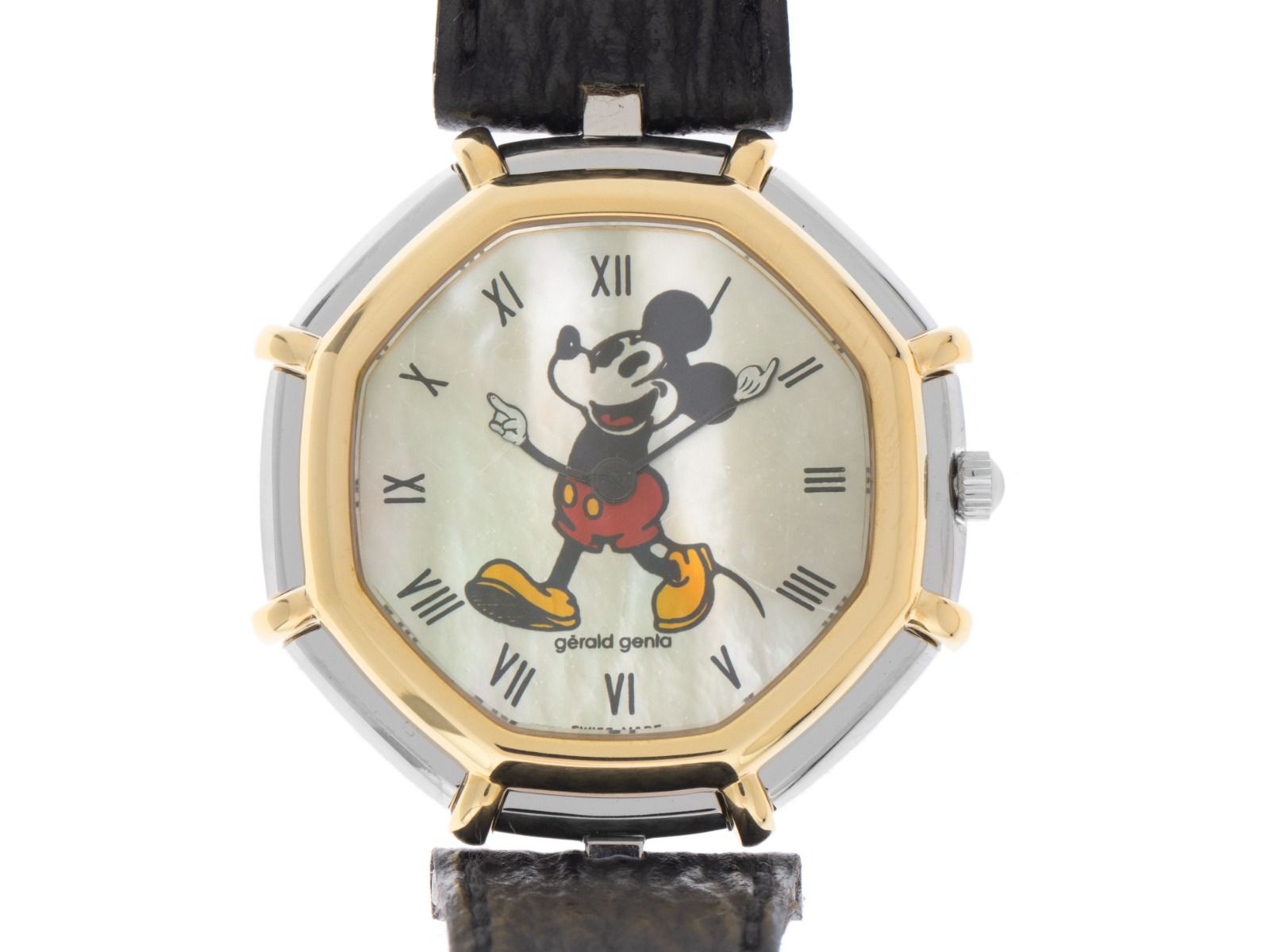 Gerald Genta Mickey Mouse Perlmutt Acciaio Oro Giallo Quarzo Cinturino Pelle