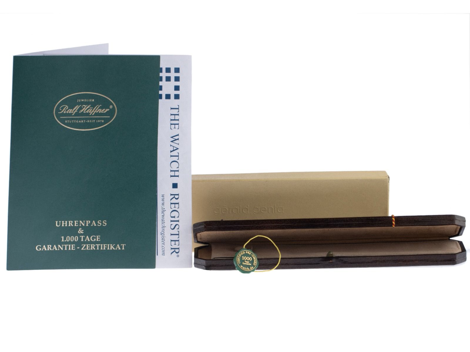 Inklusive certified pre owned Siegel / Uhrenpass mit einem Farbbild, der genauen Beschreibung sowie dem Wiederbeschaffungswert der Uhr über 6800,-€ und 1000 Tage Garantie ab Kaufdatum.