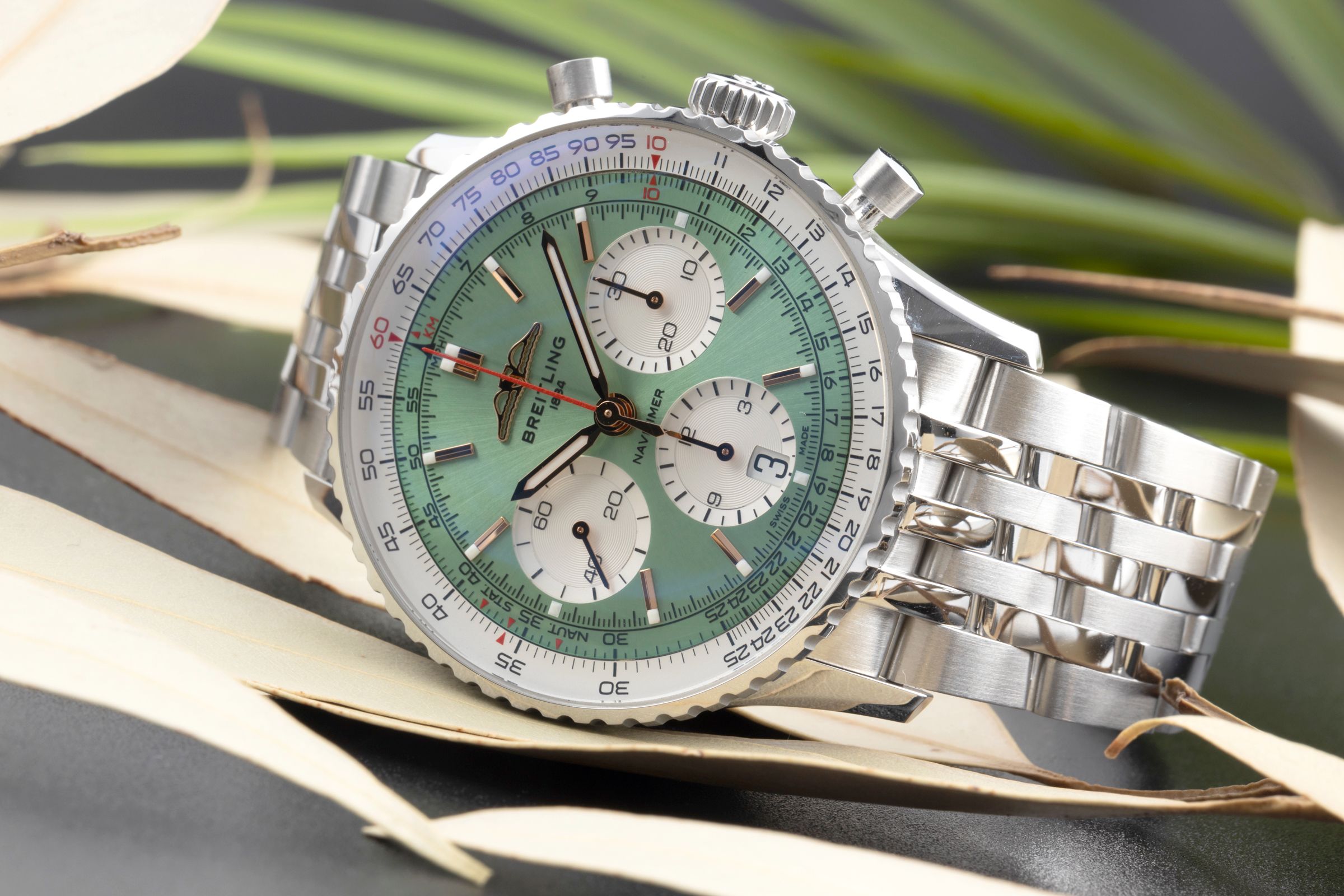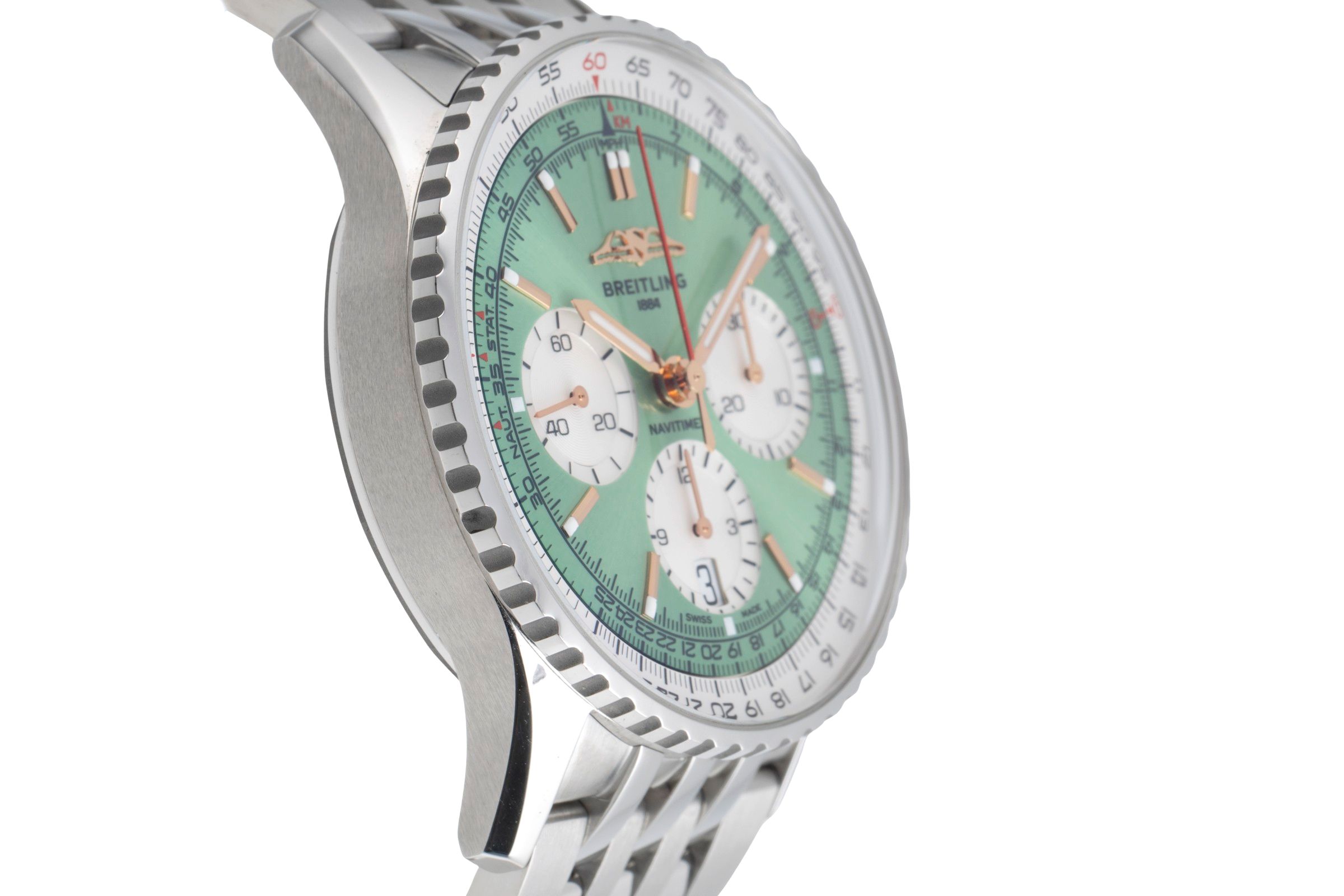 Alternative title: Breitling AB0139211L1A1 Navitimer B01 Chronograph 41 Stainless Steel / Mint Green / Bracelet; Breitling Navitimer 01 Chronograph 41 Herrenuhr Ref. AB0139211L1A1 NP: 9650,- € [2505435]