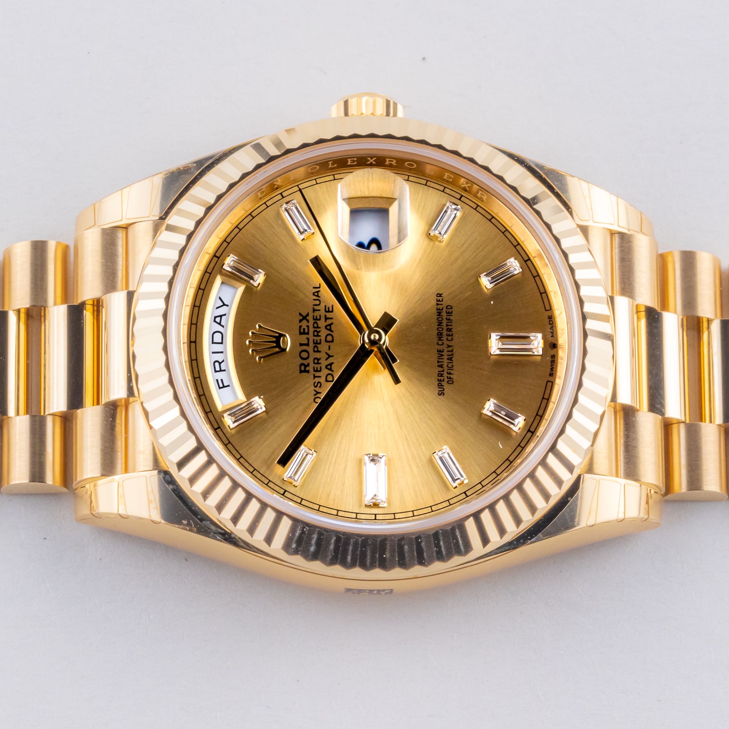 NEW Rolex Day-Date 40 Champagne Baguette 228238 2022 (Full Set)