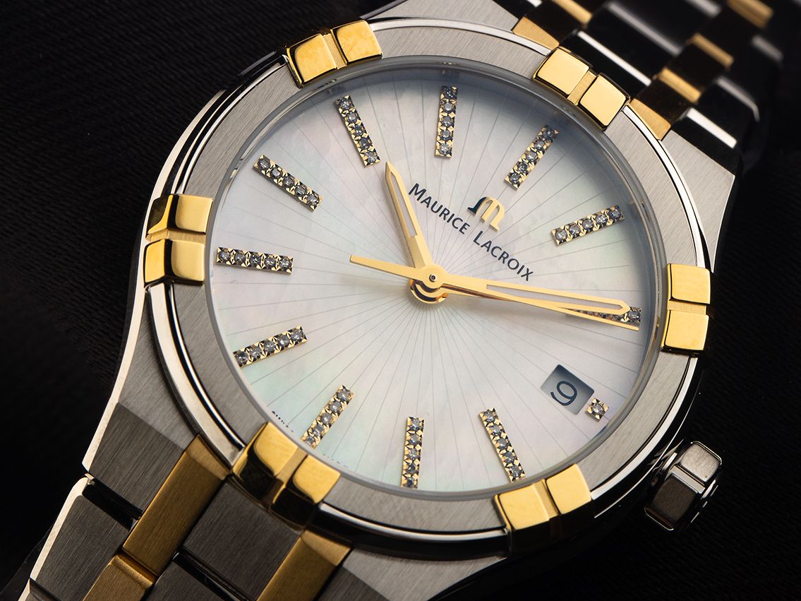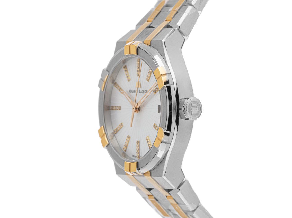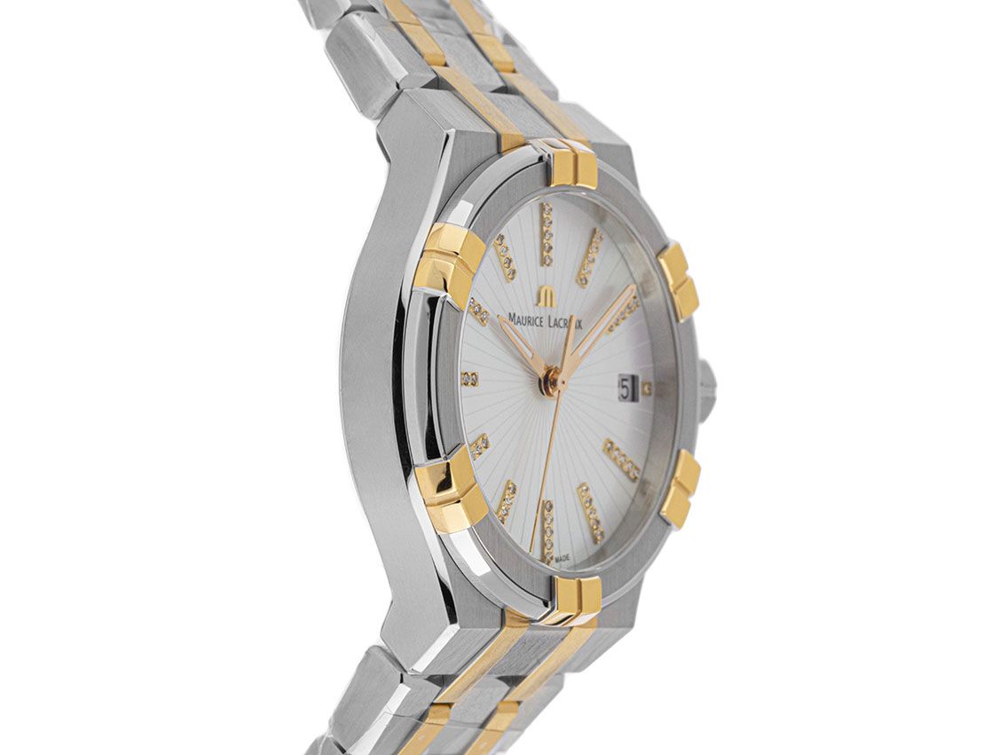 Maurice Lacroix Aikon Date Acciaio Oro Giallo PVD Rivestito Madreperla Diamanti Quarzo Bracciale Acciaio Oro Giallo