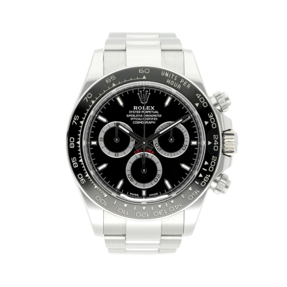Rolex Daytona del 2024 con cassa in acciaio inossidabile da 40 mm e chiusura pieghevole. Questo orologio da uomo Rolex è in ottime condizioni.