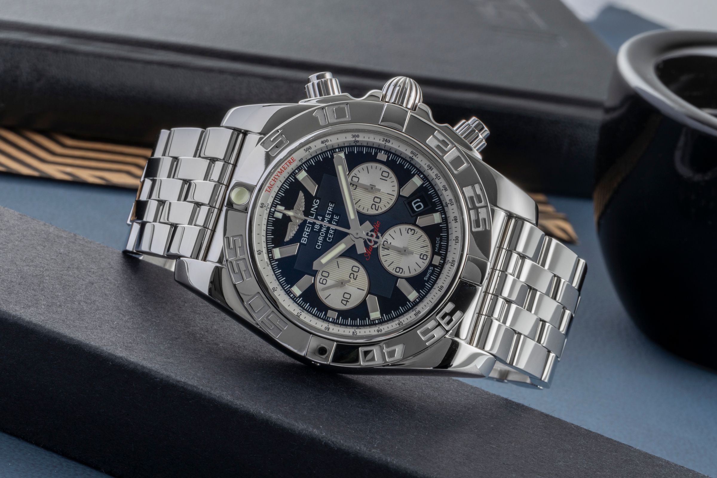 Alternative title: Breitling AB011012/BE69 Chronomat 44; Breitling Chronomat 44 Chronograph Stahl Automatik Ref. AB011012/C788 B&P 2017 [2505629]