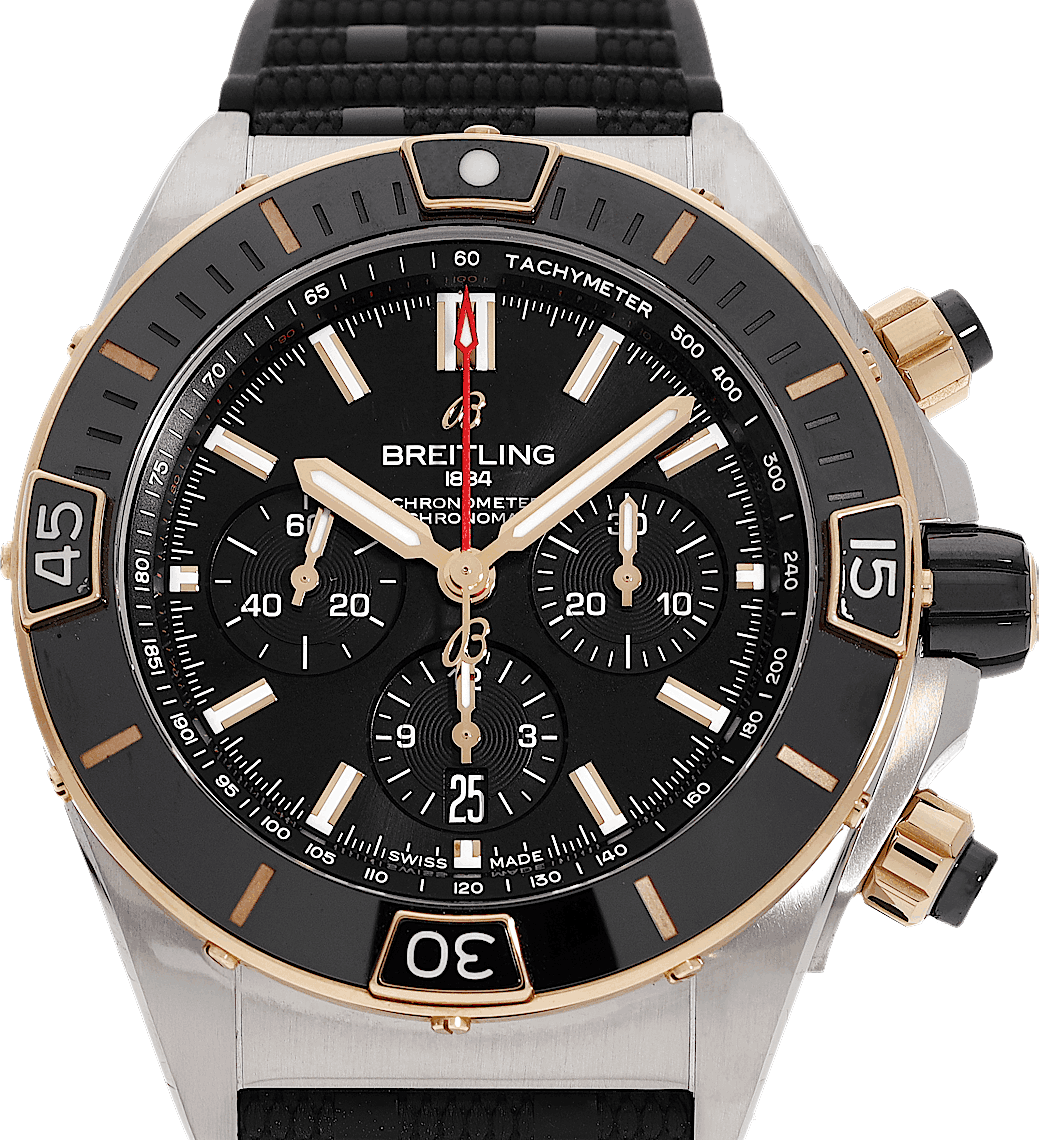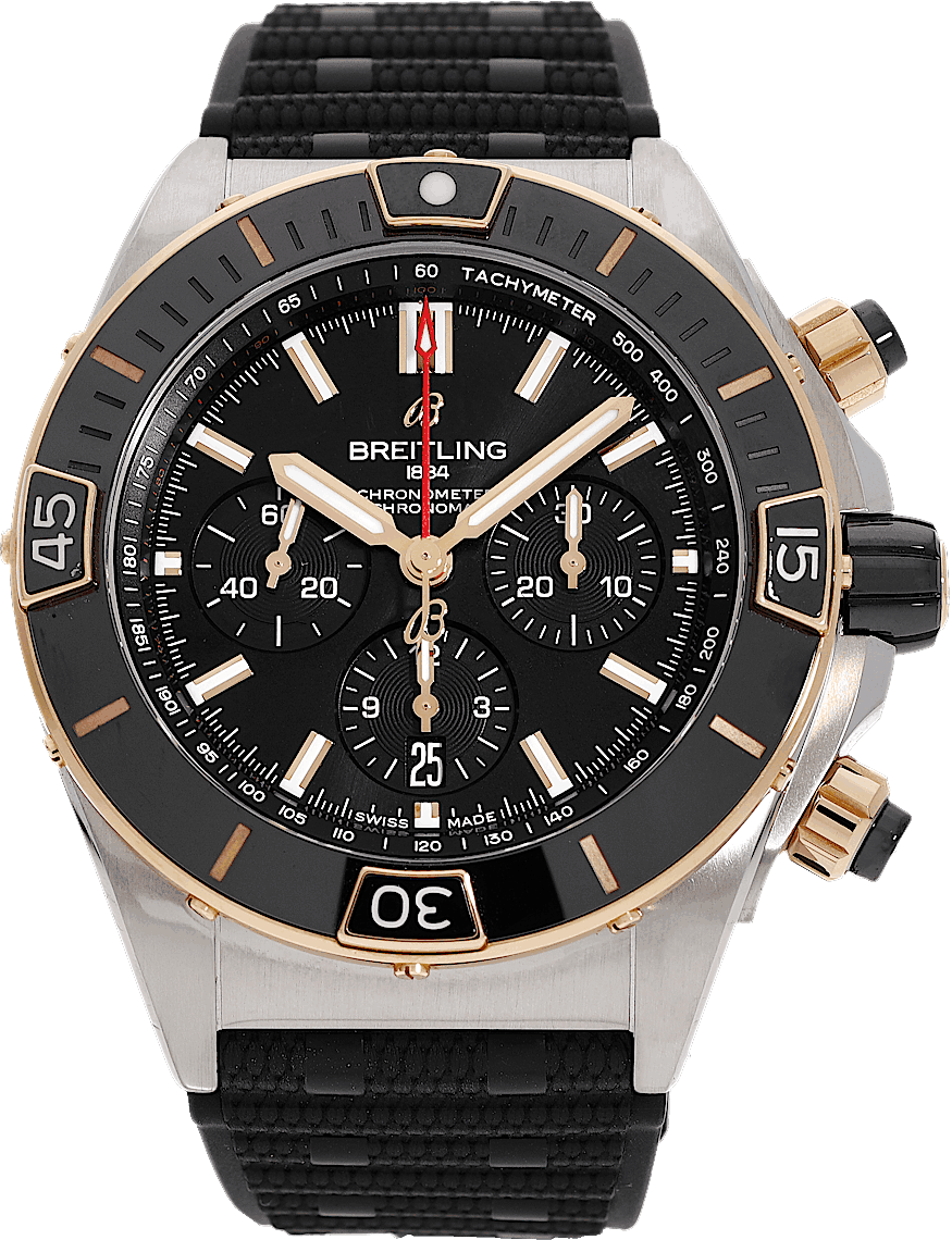 Breitling Chronomat, Reference: UB0136251B1S1, Gender: Male, Size: 45mm, Dial color: Black, Strap material: Rubber, Movement: Automatic, Year: 2024, Condition: New and unworn. An inspection by our certified watchmakers guarantees authenticity., Documents: Original papers, CHRONEXT Certificate
