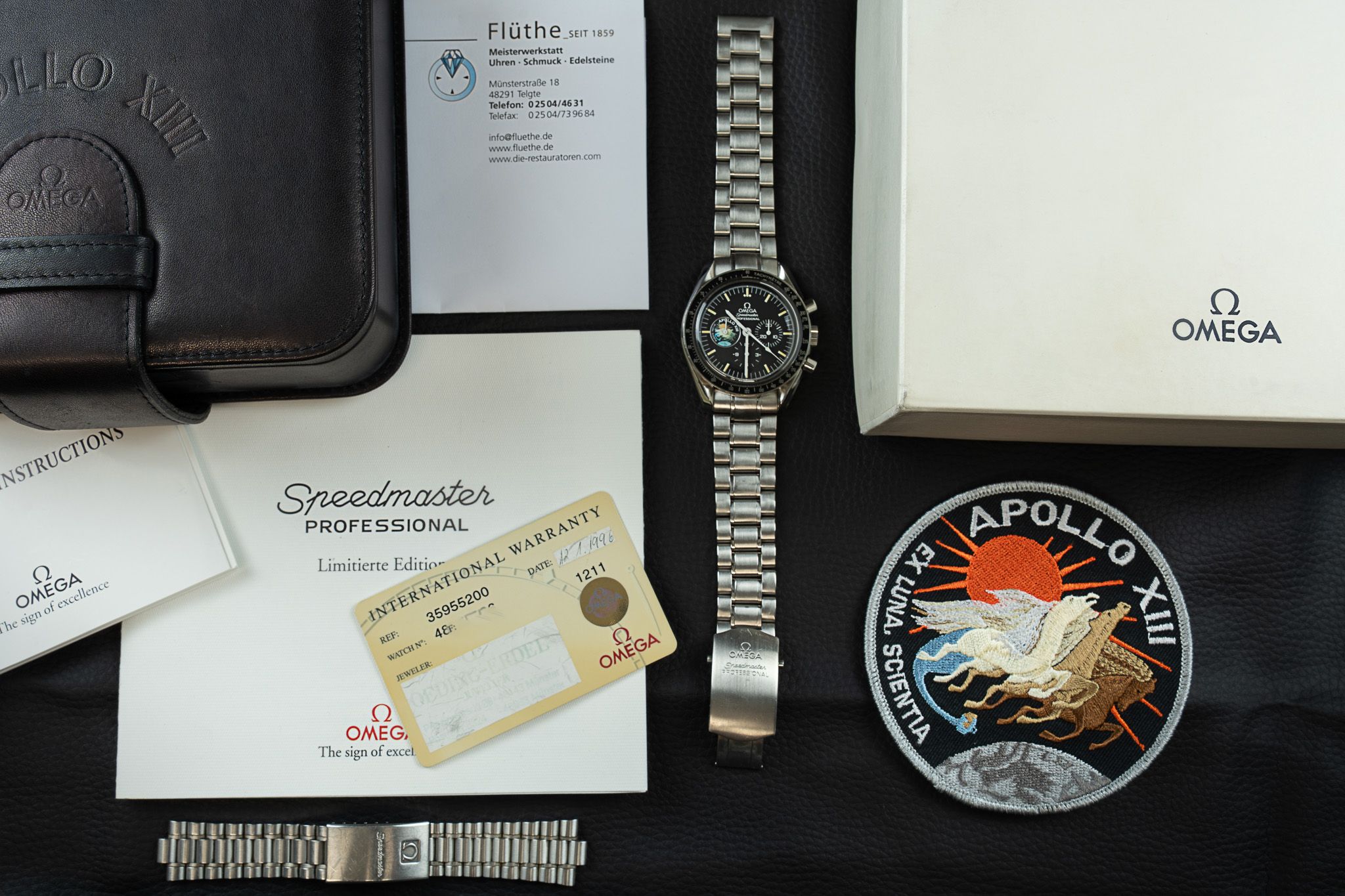 L'Omega Speedmaster Moonwatch Apollo XII Mission - rilasciato in edizione limitata di sole 999 pezzi nel 1995 per celebrare l'anniversario della Missione Apollo XIII del 1970.