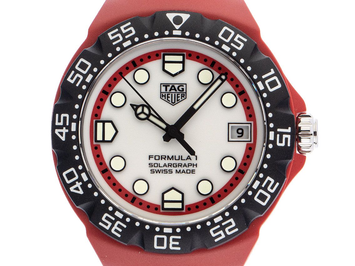 Tag Heuer Formula 1 Solargraph TH-Polylight Rot Quarz Armband KautschukGehäuse TH-Polylight rot satiniert, Gehäusedurchmesser ohne Krone 38mm, Gehäusehöhe 9,9mm. Lünette TH-Polylight matt schwarz mit 60-Minuten Einteilung, beidseitig drehbar. Armband Kautschuk rot, Anstoßbreite 18mm, Stiftschließe Edelstahl PVD beschichtet mit Hersteller-Logo. Zifferblatt weiß mit aufgesetzten Leuchtindexen und schwarzen Leuchtzeigern. Uhrwerk quarzgesteuert Kaliber TH50-00. Anzeige von Stunde, Minute und Sekunde über Zeiger aus der Mitte mit Sekundenstopp zur sekundengenauen Einstellung der Uhrzeit, Datumsanzeige mit Schnellverstellung bei 3 Uhr. Saphirglas kratzfest. Krone geriffelt mit Flankenschutz und Hersteller-Logo. Boden Edelstahl schwarz PVD beschichtet, verschraubt und graviert mit Tag Heuer Relief. Gewicht der Uhr inklusive Armband 60g. Wasserdicht bis 10 ATM. Referenznummer: WBY1161.FT8086, ID: ST116023701125H-1800, Artikelnummer: 10000083189. Original Tag Heuer Box mit Umkarton und Garantie Papiere von 2025 sowie Beschreibung, Full Set. Ungetragen. Lieferzeit sofort.