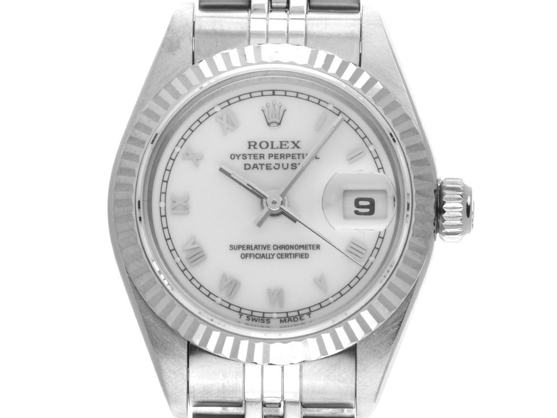 Cassa in acciaio lucido e satinato, diametro della cassa senza corona 26mm, altezza della cassa 10,7mm, lunetta in oro bianco 18kt zigrinato e lucido. Bracciale in acciaio lucido e satinato, chiusura pieghevole in acciaio con logo del produttore. Quadrante bianco con numeri romani in oro bianco applicati e lancette in oro bianco. Movimento automatico, cronometro, calibro di manifattura Rolex 2135 con 29 rubini. Indicazione di ore, minuti e secondi tramite lancette centrali con fermo secondi per la regolazione precisa dell'ora, indicazione della data con regolazione rapida sotto lente di ingrandimento alle 3. Vetro zaffiro antigraffio. Corona a vite con logo del produttore. Fondello in acciaio avvitato e inciso. Peso dell'orologio incluso il bracciale 52g, lunghezza del bracciale incluso la cassa 175mm. Numero di riferimento: 69174, anno di costruzione 1996, numero di cassa: T835XXX, ID: KS167222001025H-6200, numero articolo: 10000082880. Con controllo del movimento e completa lavorazione esterna da ottobre 2025. Scatola originale Rolex con scatola esterna e documenti di garanzia di novembre 1997, LC 100 Germania / UE, descrizione, astuccio in pelle, sigillo cronometro Rolex, libretto di traduzione e estratto del Watch Register di ottobre 2025, certificato The Watch Register / senza registrazione (database internazionale per orologi smarriti o rubati), Full Set. Super affare. Investimento con potenziale di apprezzamento. Pezzo da collezione molto raro. Ottime condizioni. Tempi di consegna immediati.
