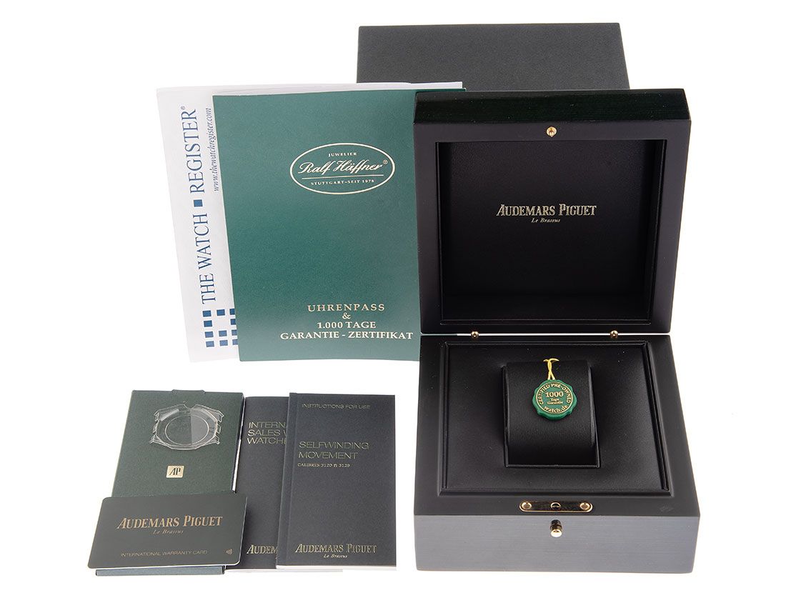 Inklusive certified pre owned Siegel / Uhrenpass mit einem Farbbild, der genauen Beschreibung sowie dem Wiederbeschaffungswert der Uhr über 74500,-€ und 1000 Tage Garantie ab Kaufdatum.