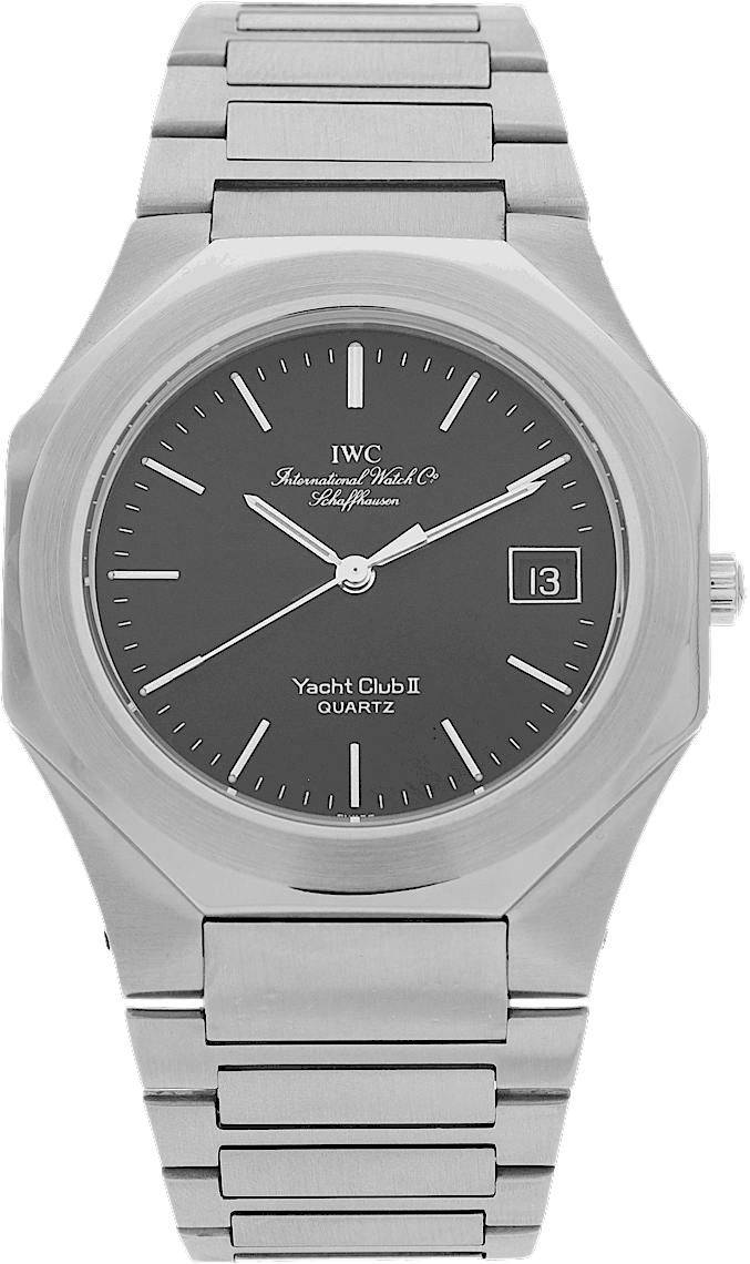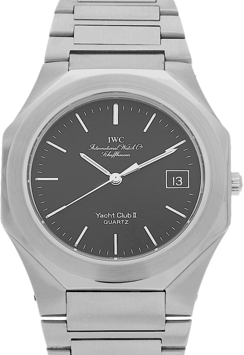 IWC Yacht Club II Jumbo, Reference: IW3312, Gender: Male, Size: 38mm, Dial color: Black, Strap material: Stainless Steel, Movement: Quartz, Condition: Previously worn with some signs of usage. The movement is flawless and the case has been cleaned. watch tested to ensure full functionality. An inspection by our certified watchmakers guarantees its authenticity., Documents: Chronext Certificate