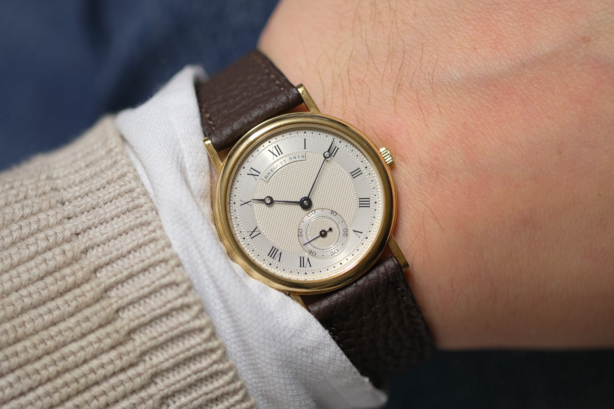 The guilloché dial is a highlight of the watch – artfully engraved and featuring the characteristic Breguet hands. The fine guilloché work and the harmonious dial architecture underscore the craftsmanship for which Breguet is renowned.