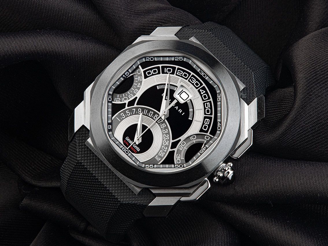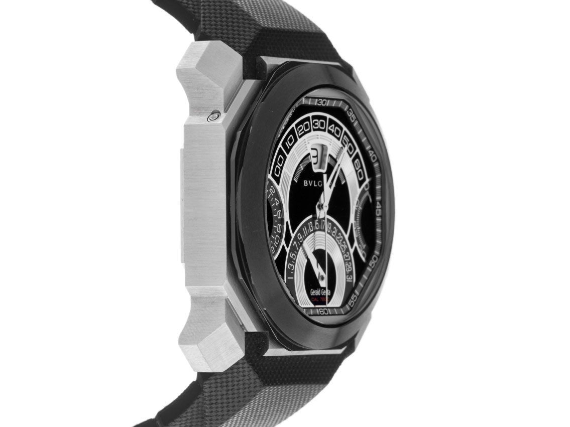 Bulgari Octo Gerald Genta Quadri-Retro Acciaio Automatico Cronografo Cinturino in Caucciù Chiusura Deployante