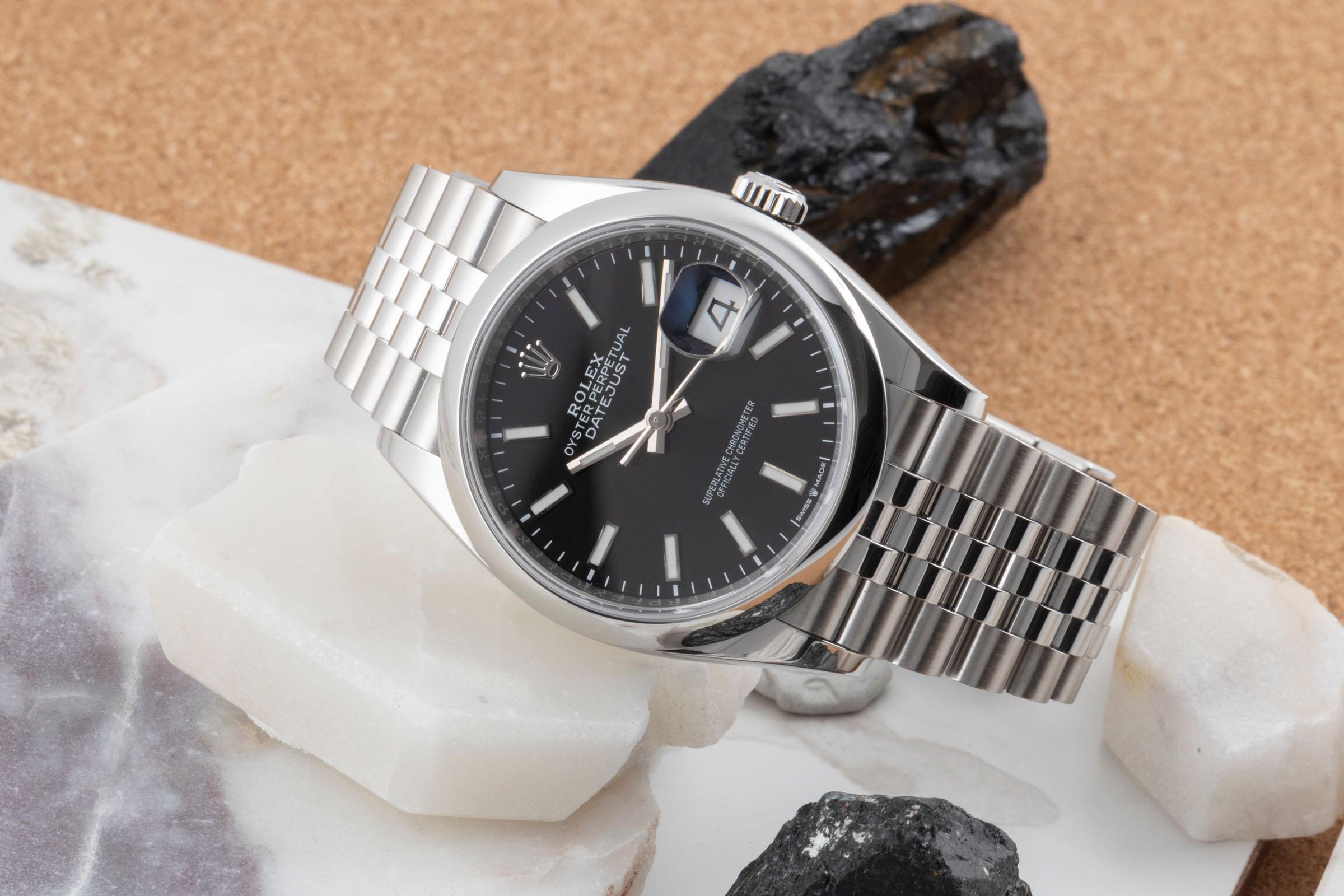 Alternative title: Rolex 126200 - Datejust 36; Rolex Datejust Black Dial Stahl Automatik Herren Ref. 126200 Box & Papiere 2019 [2506842]