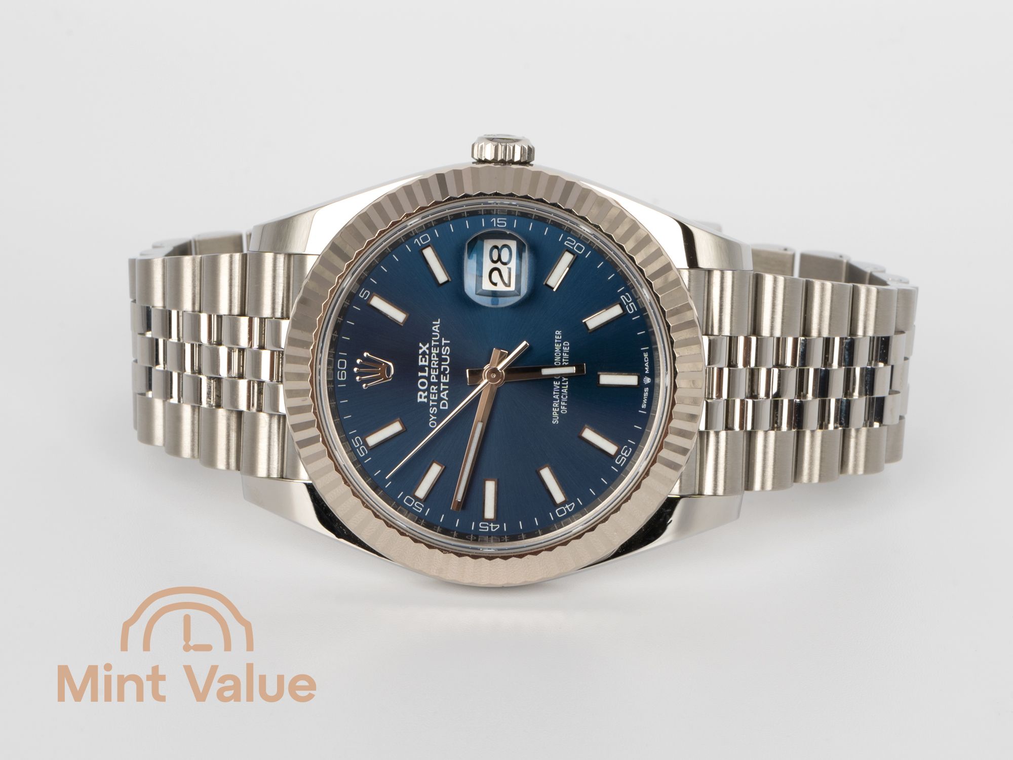 Among modern Datejust configurations, the blue dial with fluted bezel and Jubilee bracelet remains one of the most coveted. Its versatile aesthetic, precious-metal detailing, and long-term demand make it not just a watch to wear — but one to preserve.