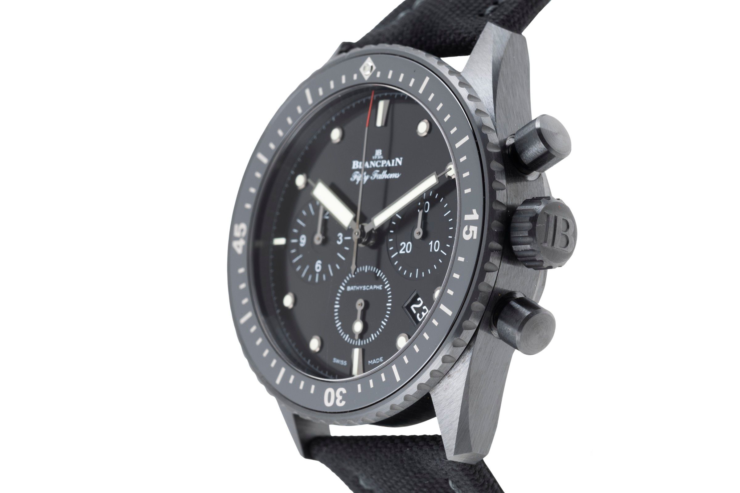 Alternative title: Blancpain 5200-0130-B52A Fifty Fathoms Bathyscaphe Flyback; Blancpain Fifty Fathoms Chronograph Keramik Automatik Ref. 5200-0130-B52A Box [2506698]