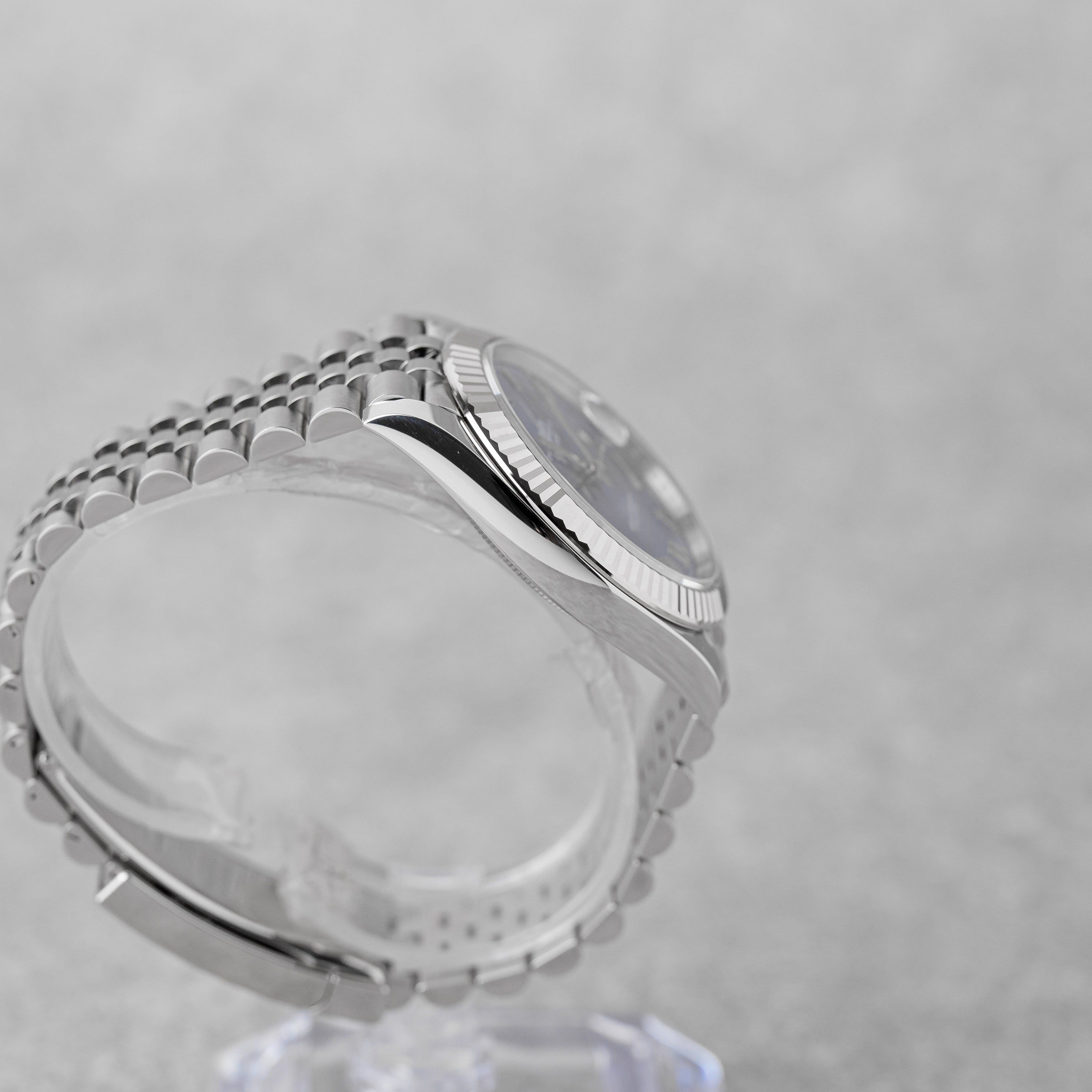 This stunning Azzurro Blue dial Datejust 41, paired with the iconic Jubilee bracelet and white-gold fluted bezel, is one of the most desirable modern configurations in the collection. The watch is in new condition, comes as a full set from 11/2025, and is covered by the Rolex international guarantee until 11/2030. A refined and timeless piece, perfect for those seeking elegance, versatility, and strong long-term value.