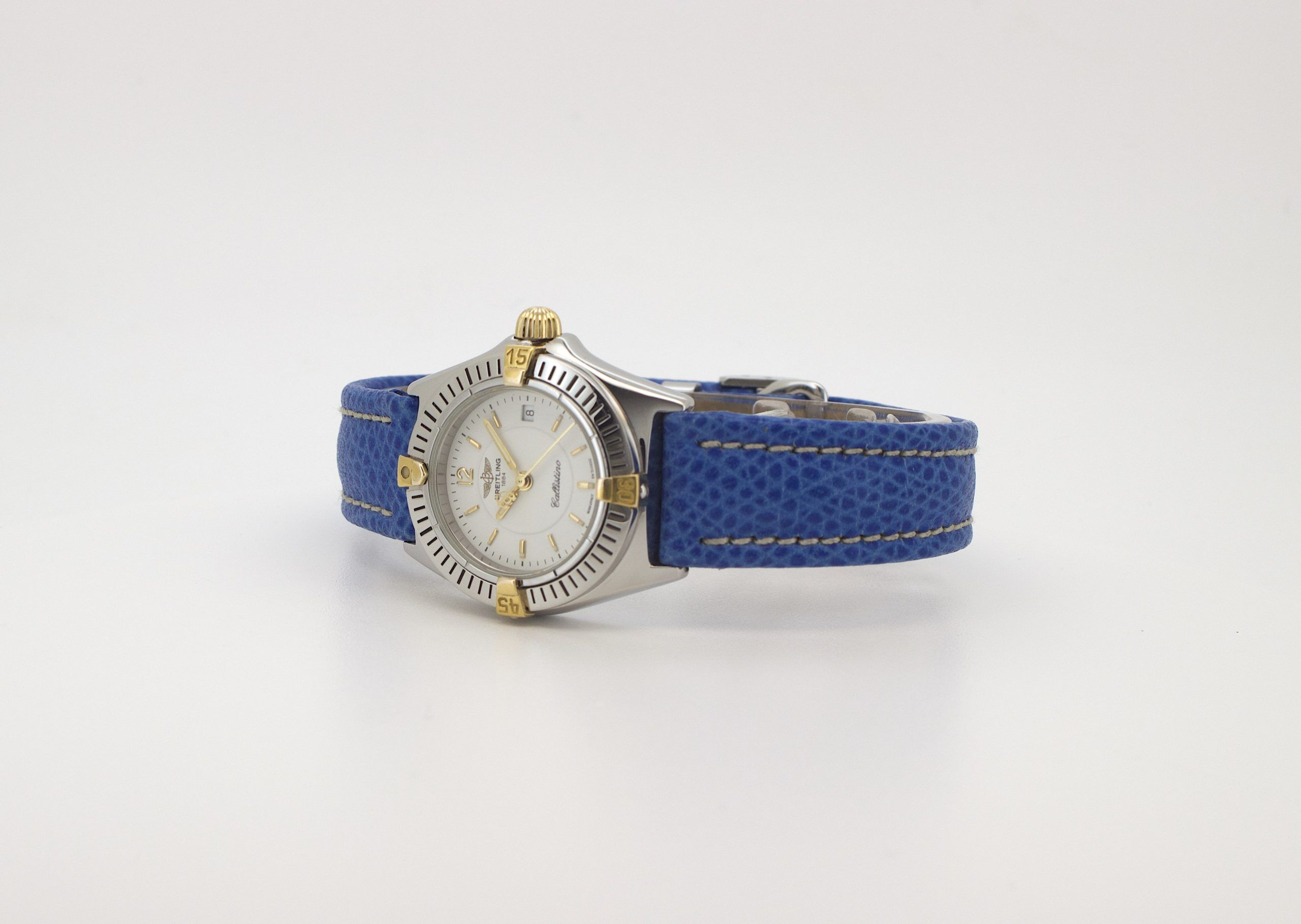 Blauw Leder Nieuw Origineel Breitling band ,inclusief stalen vouwsluiting